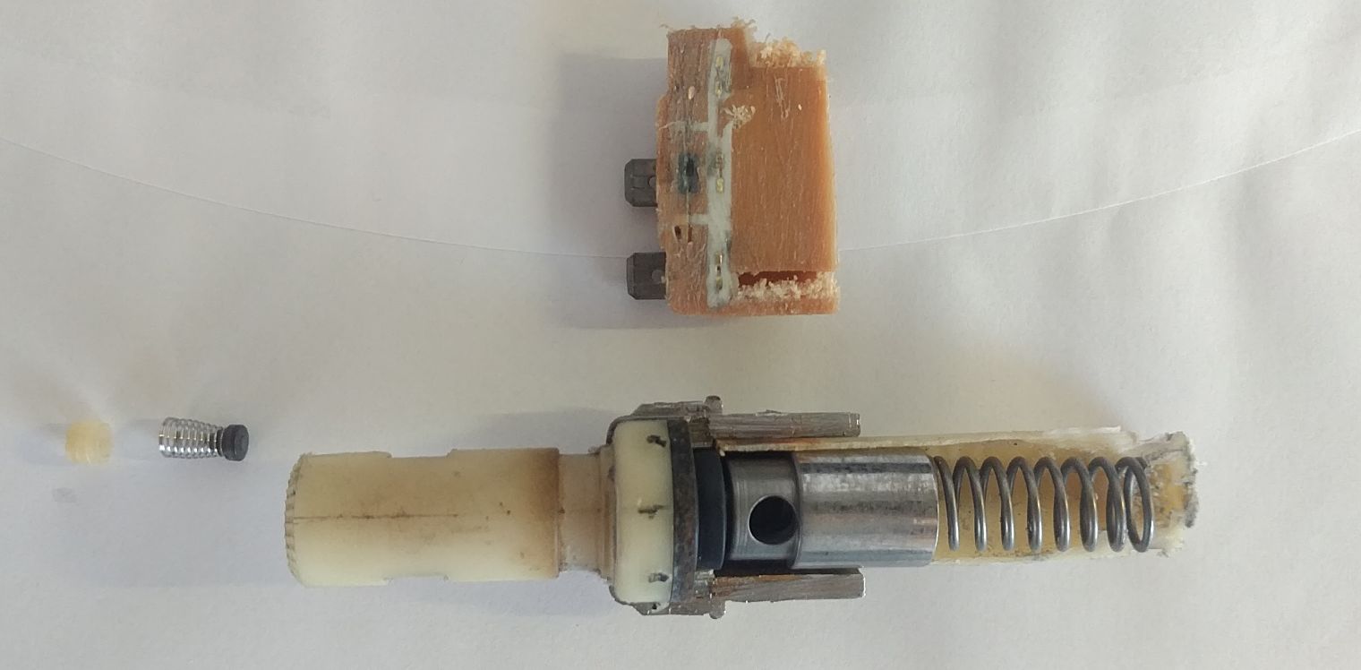 Ein Querschnitt der Pumpe, um es sich besser vorstellen zu können. Das kleine schware Rechteck, zwischen den Kontakten, müsste eine Diode sein, die Frage kam hier im Forum mal auf.