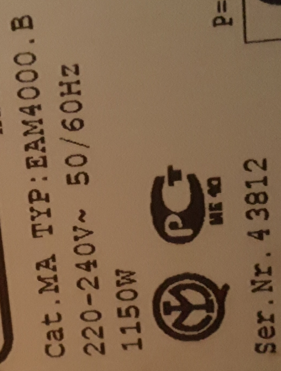 • Poste mal die Zahlen/Ziffernfolge hinterm Wassertank und die Bezeichnung unter der Maschine.