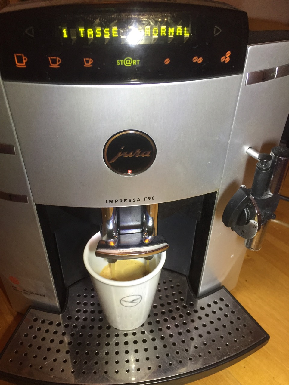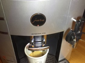 mir wurde eine Jura Impressa F90 zugespielt. 2016 wurde bei dem Gerät wohl die jüngste Wartung / Generalüberholung durchgeführt (einige Aufklebern im Inneren legen dieses auch nahe). Es wurden dabei u.a. Brüheinheit, Mahlwerk, Wassertank getauscht; also mechanisch sollte eigentlich alles top sein.
