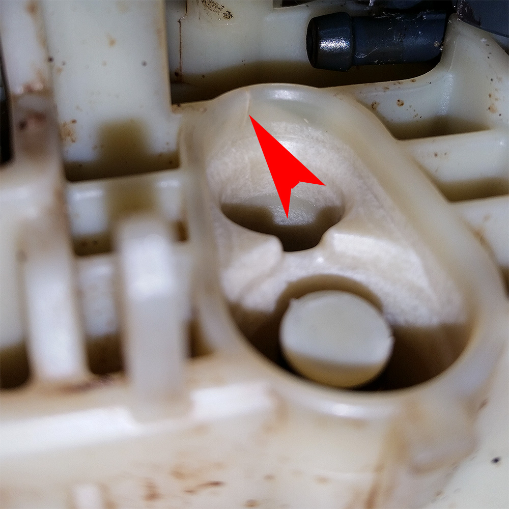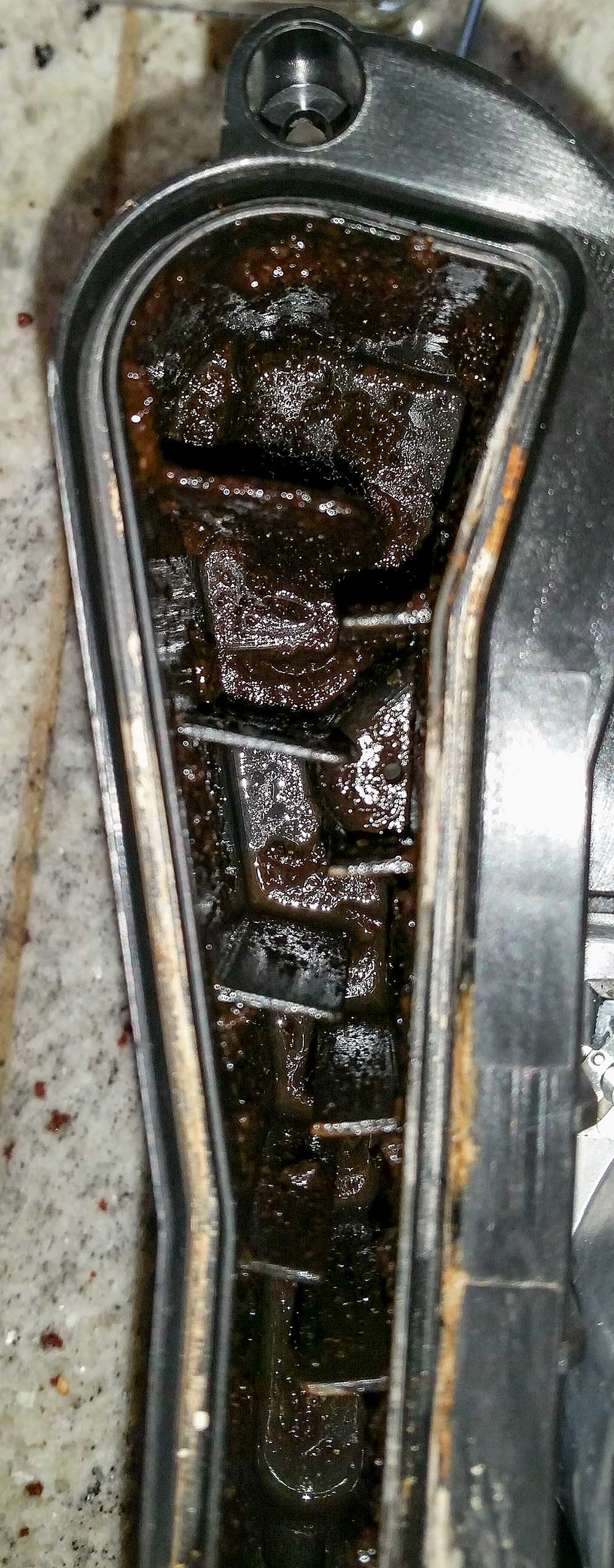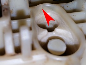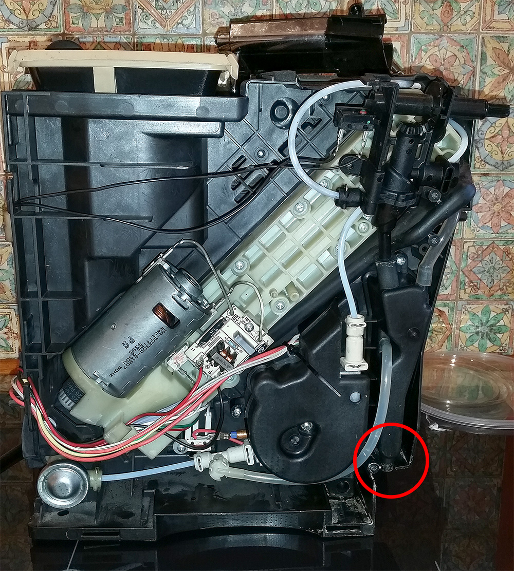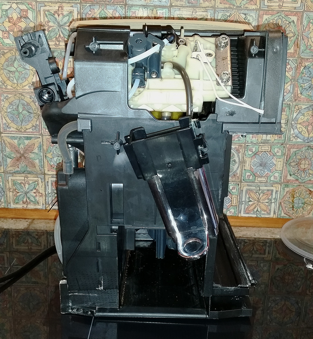 Habe jetzt alles soweit auseinander, daß ich die Brühgruppe sehen kann. Aber da sieht man ja vermutlich auch nicht per Testlauf, ob es an diesem Riss liegt!?
