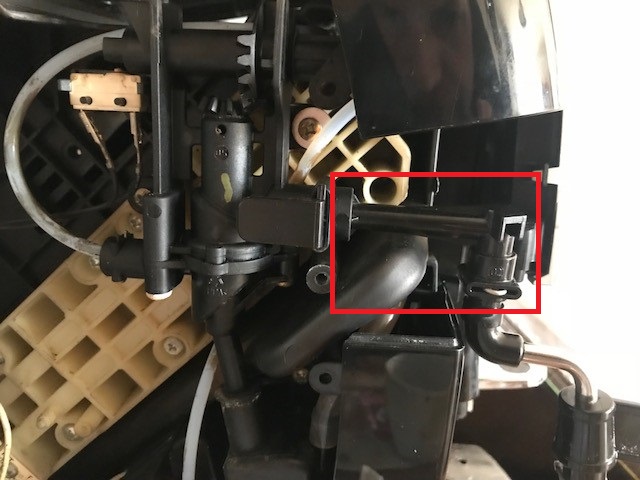 Der Milchaufschäumer hat zwar funktioniert, aber keinen brauchbaren Schaum gemacht. Es entstand auch immer recht viel Kondenswasser und etwas Rauch/Dampf. Habe das Gehäuse weggebaut und gesehen, dass das Rohr zwischen Dampfventil und Milchaufschäumer/Dampfrohr einen Riss hat und dort Druck und Feuchtigkeit entweicht.