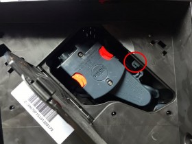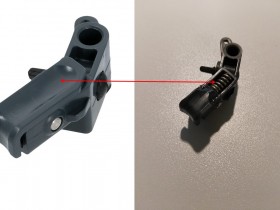 Ein Teil der Führungsfläche ist abgebrochen und die Feder herausgesprungen.