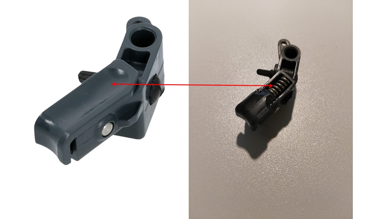 Leider kann ich nirgends erkennen wo das Plastik abgebrochen ist und die Feder hingehört.