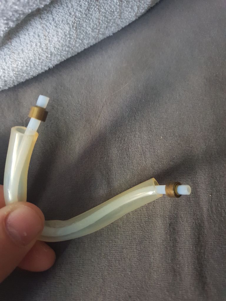 • Nein, den Schlauch meine ich nicht. Sondern da wo der Schlauch drin ist, das ist der Raccord. Den abziehen, evtl bleibt da die Hülse mit den 2 Oringen auf dem Rohr, diese dann entfernen. Dann den Aussendurchmesser des nackigen Rohres messen.
