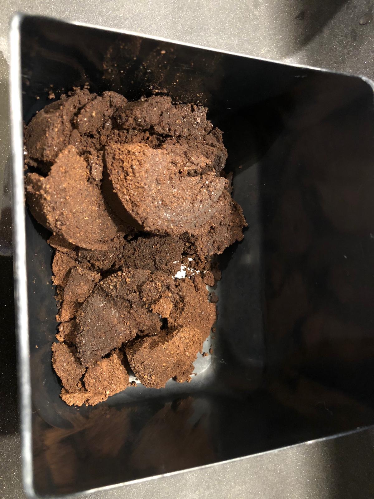 Im Tresterbehälter sieht alles recht gut aus, kein Wasser, das dort nicht hineingehört und die Kaffee-Tabs oder wie auch immer man die runden Klumpen nennt, sind recht knackig.