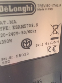 Hersteller: DeLonghi | Typ-/Modell: Bitte auswählen... ESAM 5708.S | ca. Baujahr: 2012