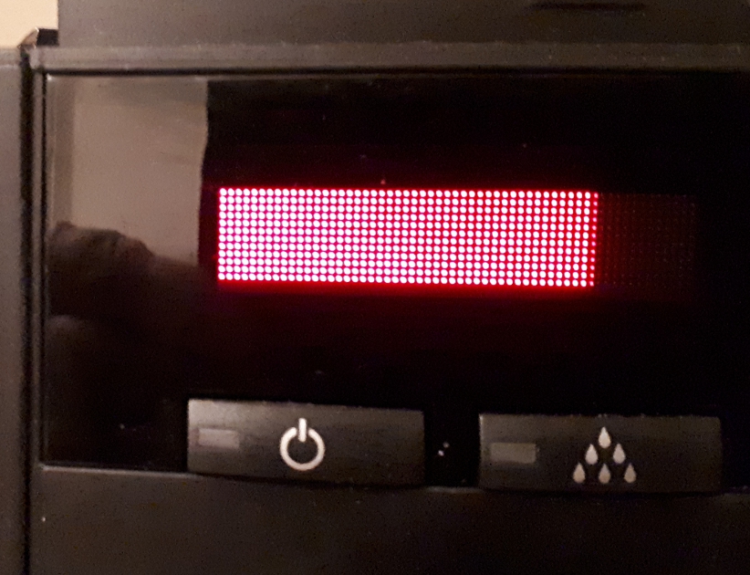 beim Einschalten nur rotes Display und Brühgruppe läuft ganz gequält rauf und runter bis nach einiger Zeit Grundstellung und Display bleibt rot.