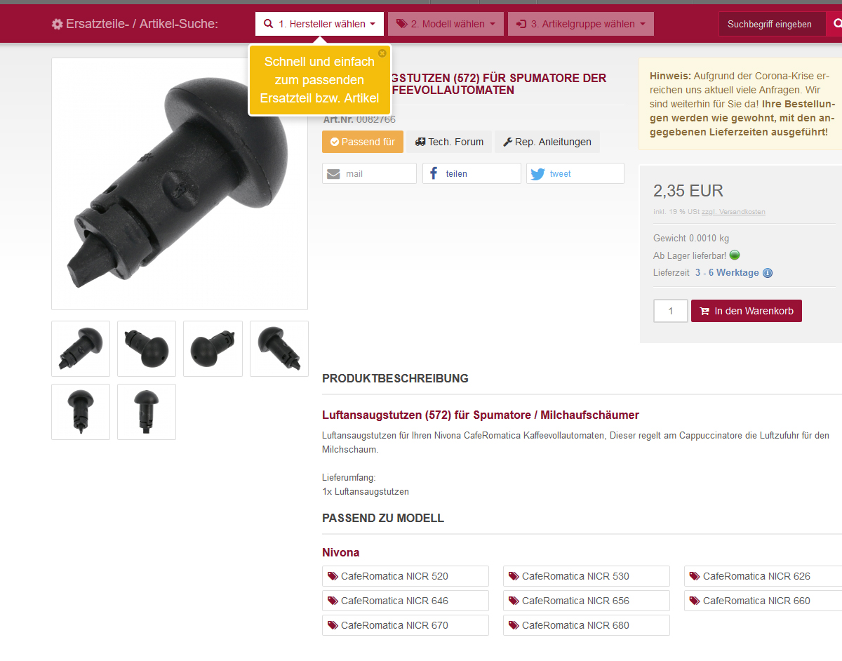 hab heute auch die Modifikation für meine Melitta e970 erhalten. Habe die Hülse und die Weiße Kappe bestellt da ich am KV eine Graue Kappe hatte.