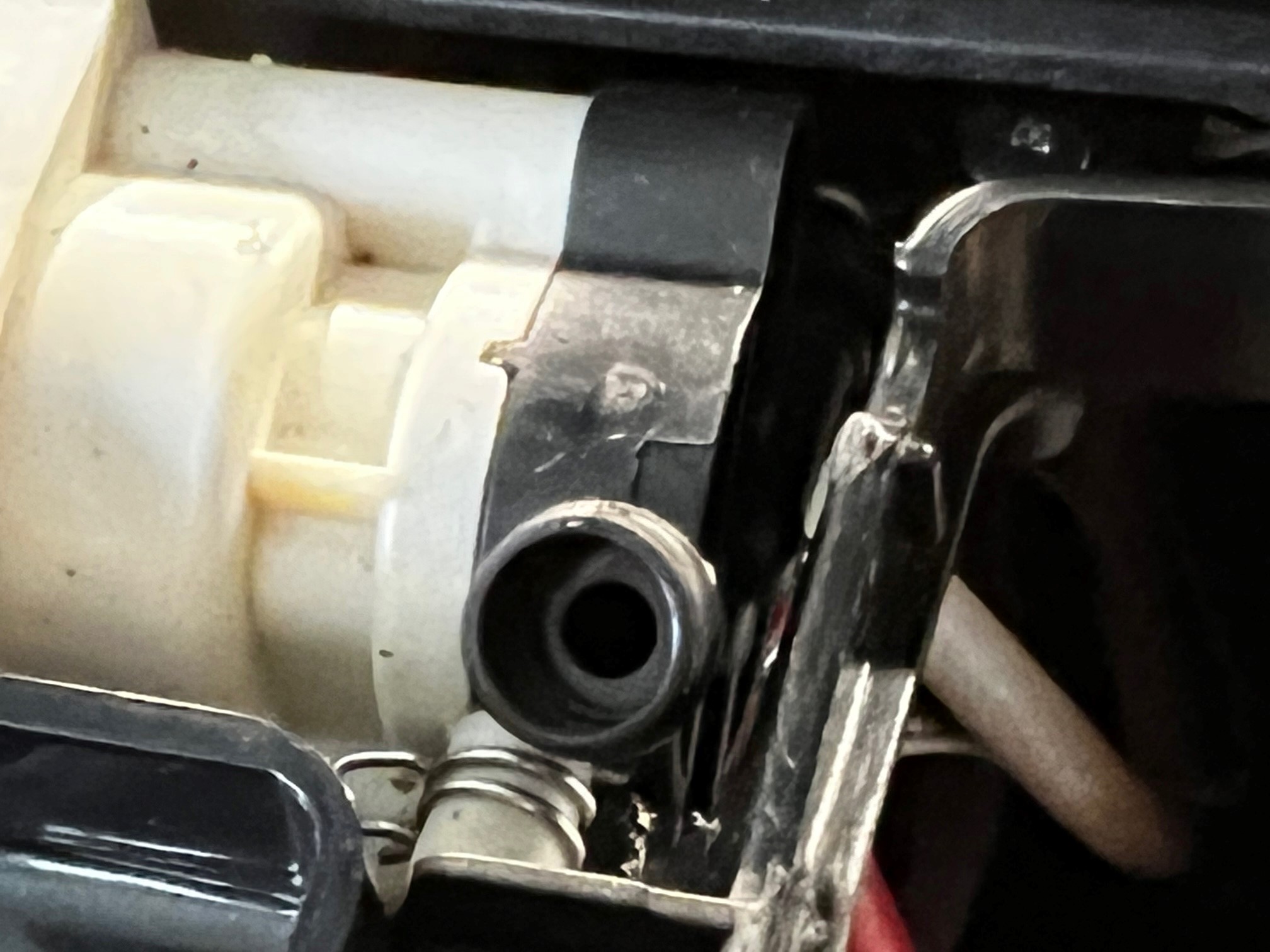 Also wenn würde ich bei Bild 2 noch die Tülle rausziehen und nicht mit dem Kunststoff zusammen hinten in die schwarze Tülle machen. Das Metallplättchen gibt es ja auch in anderen Ansaugstutzen. Wie gesagt, da muss man etwas gucken, wie es für einen passt.
