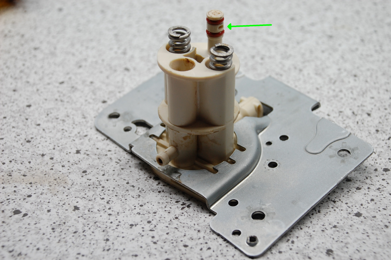 • Da ist doch das Cremaventil, ist halt mittlerweile schwarz durch den Kaffee.