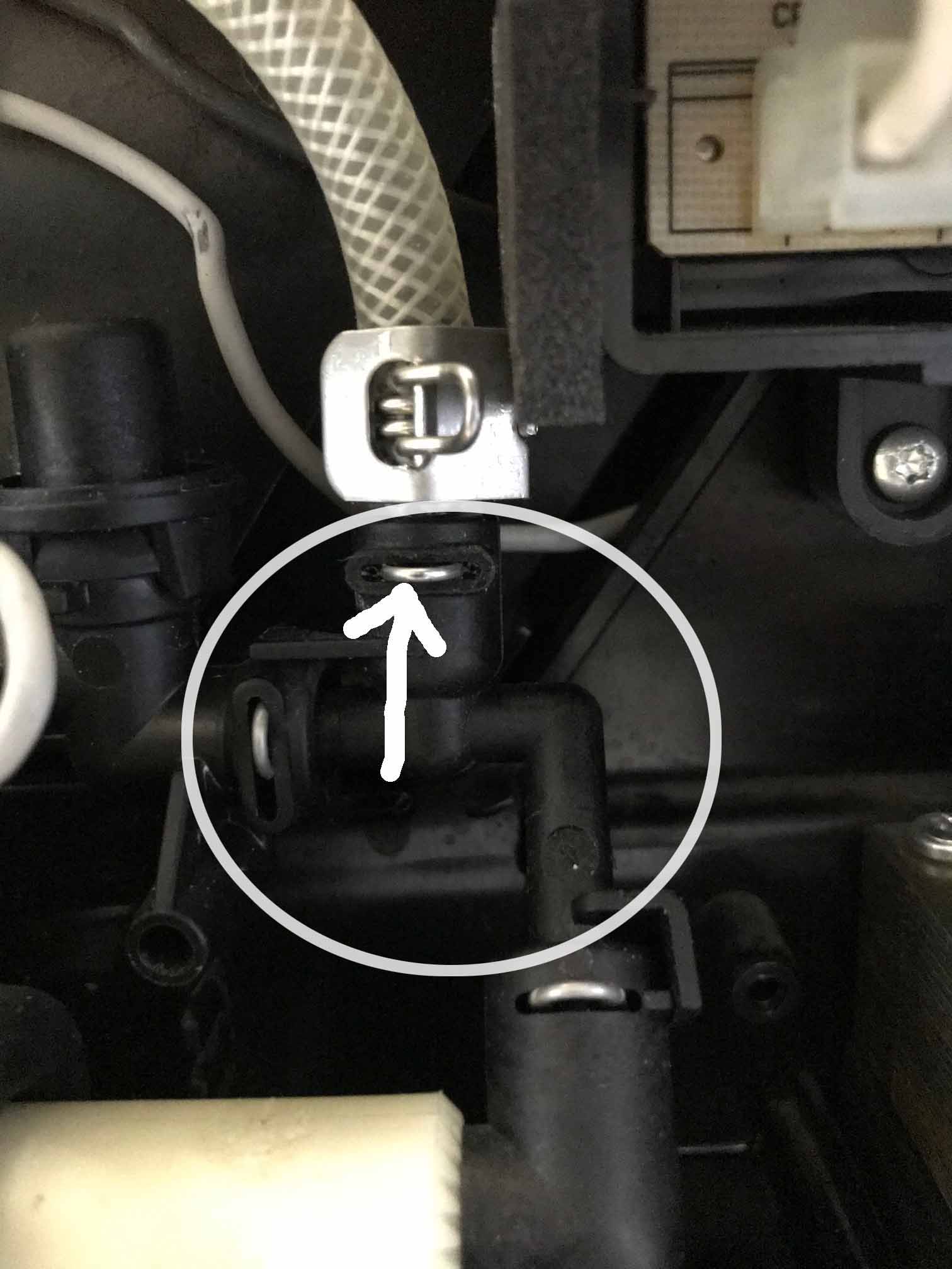 Bei mir aus der Maschine tropft Wasser (siehe Bild / Pfeil)