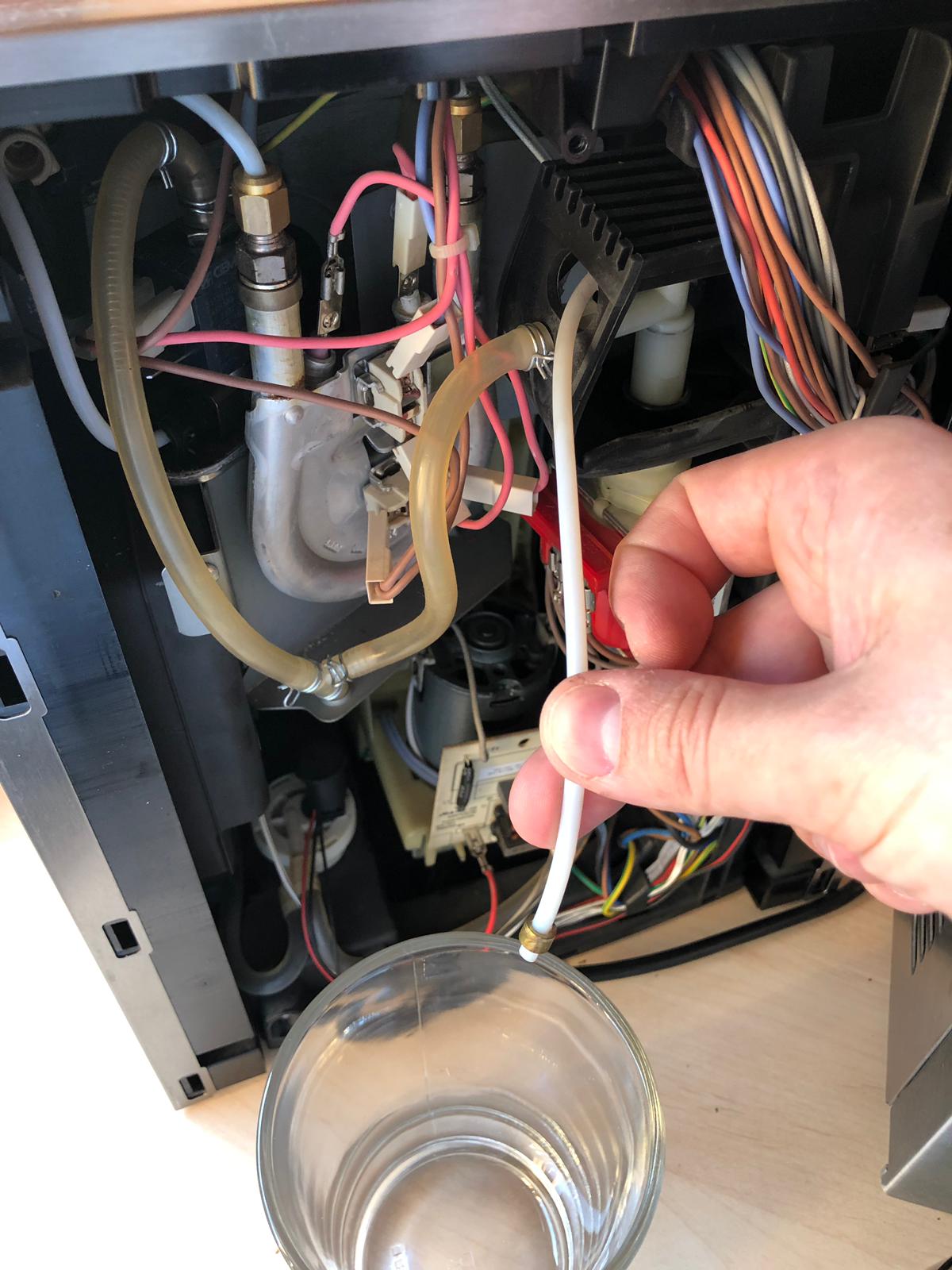 1. Gerät fährt normal hoch. Da das display extrem viele pixelfehler hat, kann man auch nur 3 - 5 reihen erkennen. Was ich nun versucht versucht habe: einen normalen kaffee rausgelassen. Der kaffee wurde normal gemahlen. In der brühgruppe zusammen gedrückt aber dann ist nichts weiter passiert. Beim ausschalten habe ich mir dann das pulver angesehen und festgestellt das es komplett trocken war. -> kein wasser gezogen. Obwohl wasser im Behälter war.