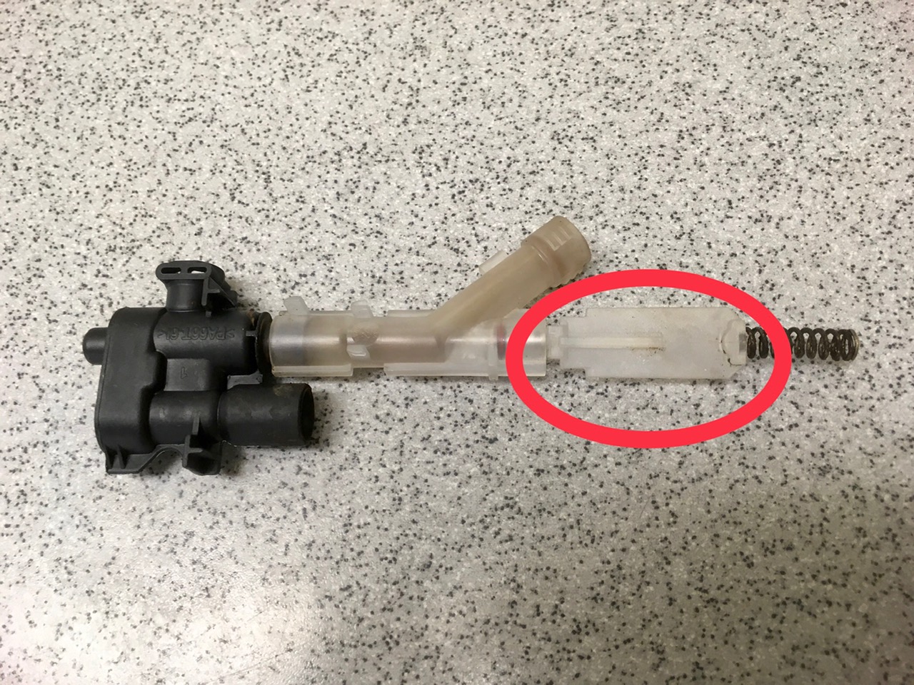 Aufgrund div. Threads in diesem Forum haben wir das Drainageventil (Bild 2) sowie das Auslaufventil ersetzt. Leider verhält sich die Maschine genau gleich wie vor dem Tausch: Das Wasser läuft durch den rot eingekreisten Ausgang des DV (Bild 2) direkt in die Tropfschale. Der gemahlene Kaffee wird gar nicht gepresst, sondern als Pulver in den Tresterbehälter geworfen.