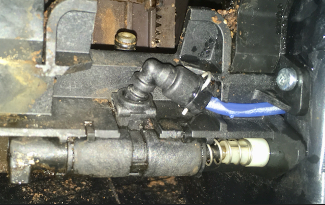 Vermutlich hat sich die weiße Kappe auf der Ventilstange des Drainageventils gelöst- die reißt nach einigen Jahren gern mal.