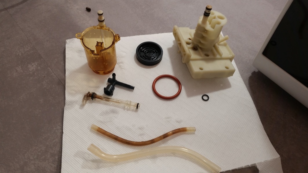 Aktuell wurde der Brühkolben selber ausgebaut zerlegt und gereinigt. Siehe bitte Bilder