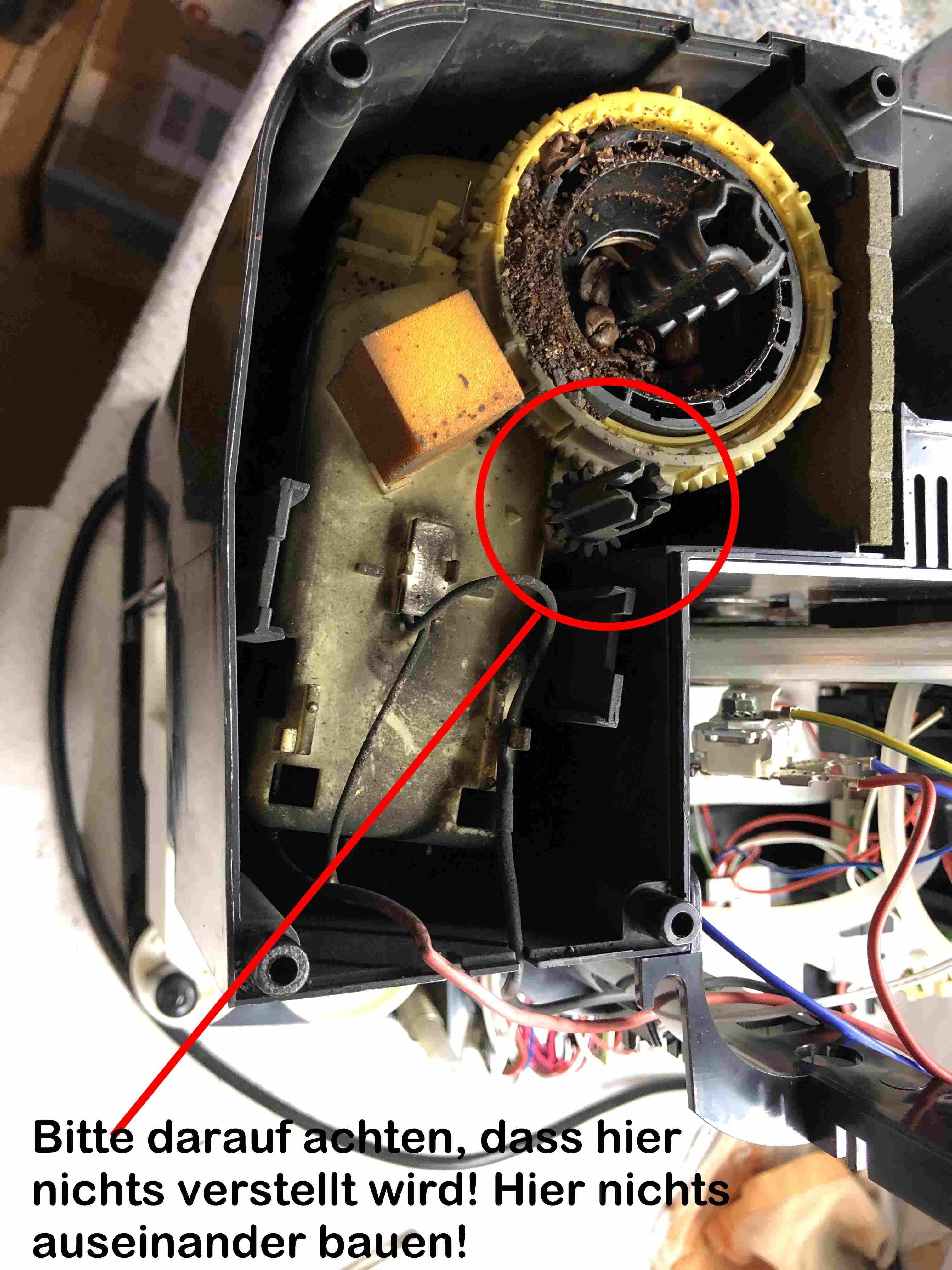 3.Kaffeetaste gedrückt,Brüheinheit fährt auf Position und nun sollte das Mahlwerk anlaufen.