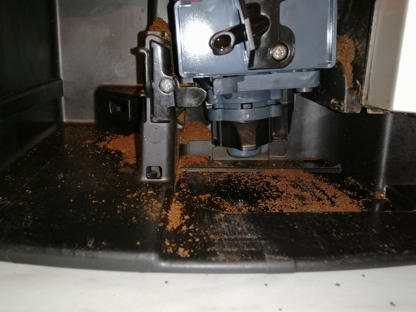 Seit mehreren Wochen landet das wenigste vom gemahlenen Kaffee in der Brühgruppe, sondern im Geräteinnern (Wasserauffangbehälter, Kaffeepulverschacht, oder unterhalb der Brühgruppe. Der Kaffee wird dadurch sehr dünn und das meiste Pulver vergeudet. Muss das Gerät täglich reinigen und das Pulver entfernen. Wer kann mir bei meinem Problem helfen. Die Brühgruppe macht außerdem quietschende Geräusche beim hoch-und runterfahren.