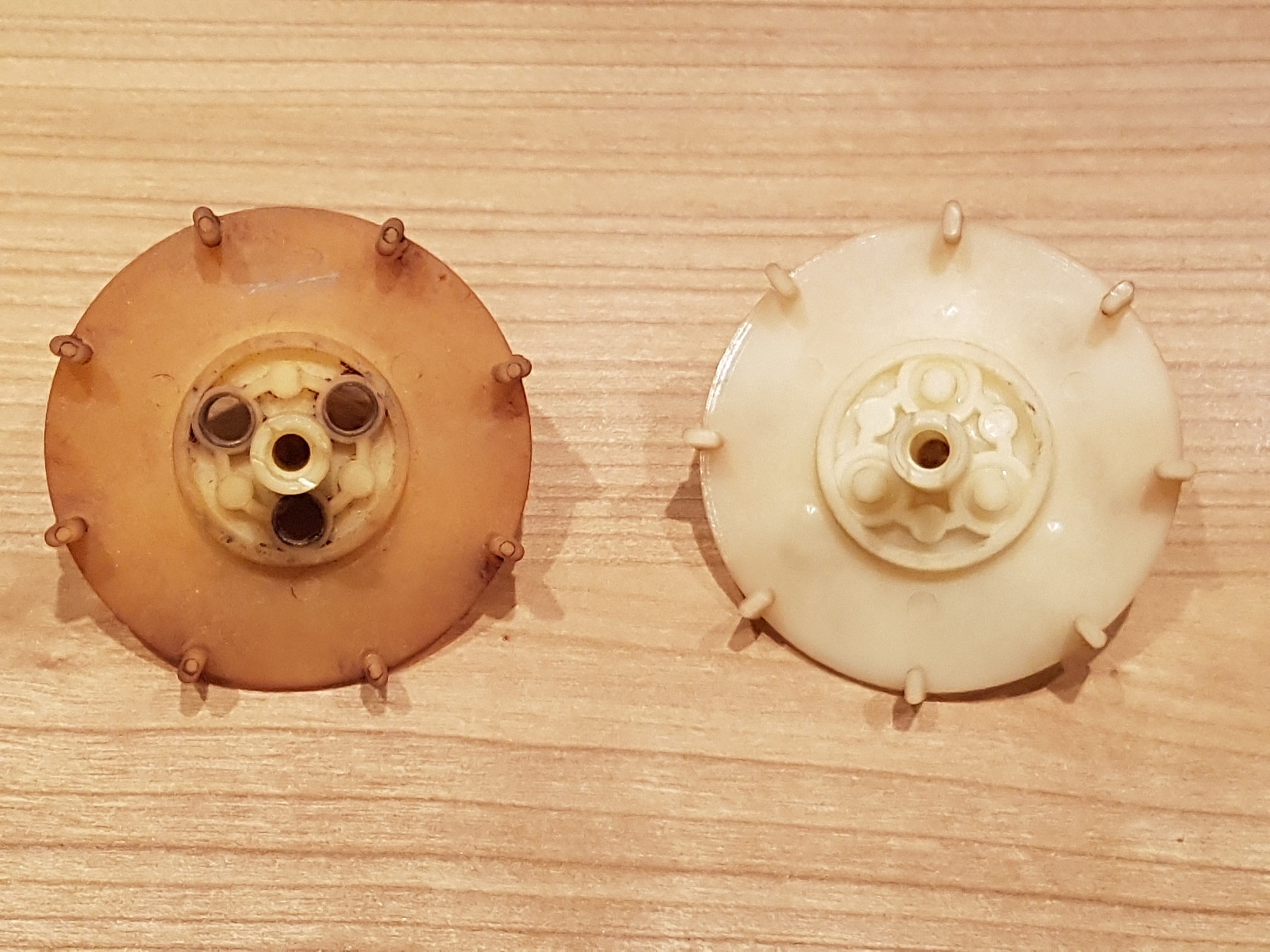 ich habe die Tage an einer Jura F8 aus 2016 eine Wartung durchgeführt. Dabei ist mir beim Mahlwerk aufgefallen, dass die sonst üblichen Federn mit den Kugel (Rutschkupplung) nicht eingebaut sind. Hierzu habe ich 3 Bilder in den Anhang beigefügt. Man sieht rechts die Förderscheibe der F8 und links die einer E-Reihe. Deutlich ist zu sehen, dass man erstmal auch keine Rutschkupplung einbauen kann, da die entsprechenden Löcher samt Messinghülsen nunmal fehlen. Es währe jetzt für mich keine Problem dies umzurüsten, wollte aber erstmal ein paar Meinungen einholen. Im Mahlwerksboden und im Mahlwerkskegel sind die Aussparungen ja wie üblich vorhanden. Daher ein paar Fragen: