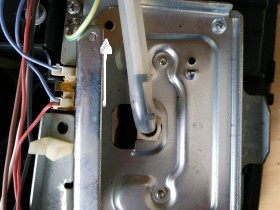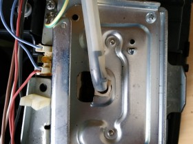 So, hab die Maschiene jetzt offen und hab es auch geschafft den Schlauch wieder auf zu stecken, nachdem ich die 4 Schrauben gelöst und ein paar Kabel abgemacht hatte. Leider ohne erfolg. Jetzt habe ich das Problem dass ich die Muttern, mit denen die die silberfarbene Platte befestigt war, nicht wieder festmaschen kann, da ich an die unterseite nicht herrankomme.