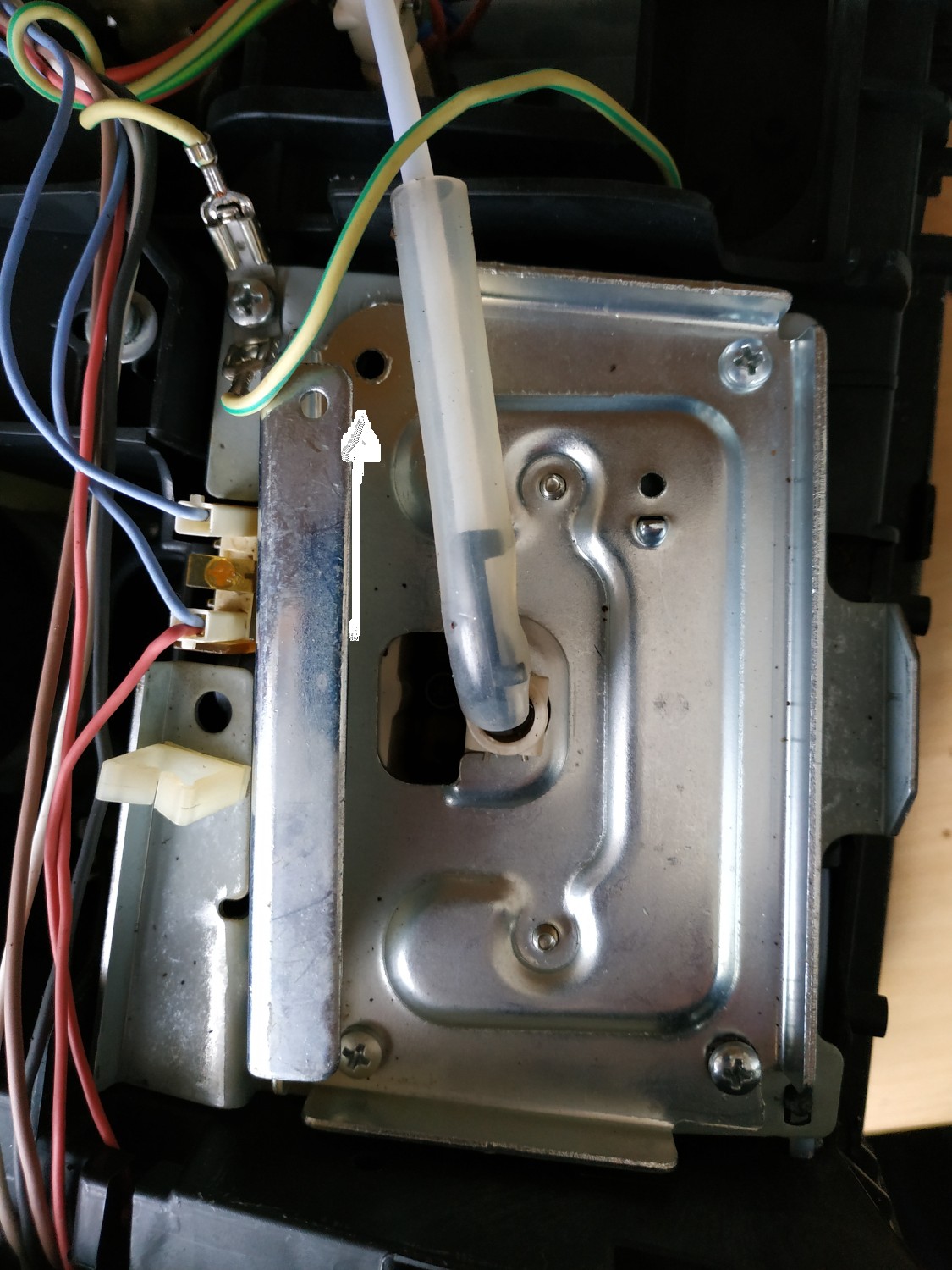 • Ja, der Knopf für die Heißwasserdüse ist nur aufgesteckt. Sitz oft sehr fest. Zu Not mit was Großflächigem hebeln zwischen Knopf und Frontblende. Zumindest hat du schonmal den Maschinentyp mit der besseren Heizung. Den schwarzen Schlauch und die Kammer, in den der hineinführt, unbedingt sauber machen. Sehr häufige Fehlerursache.