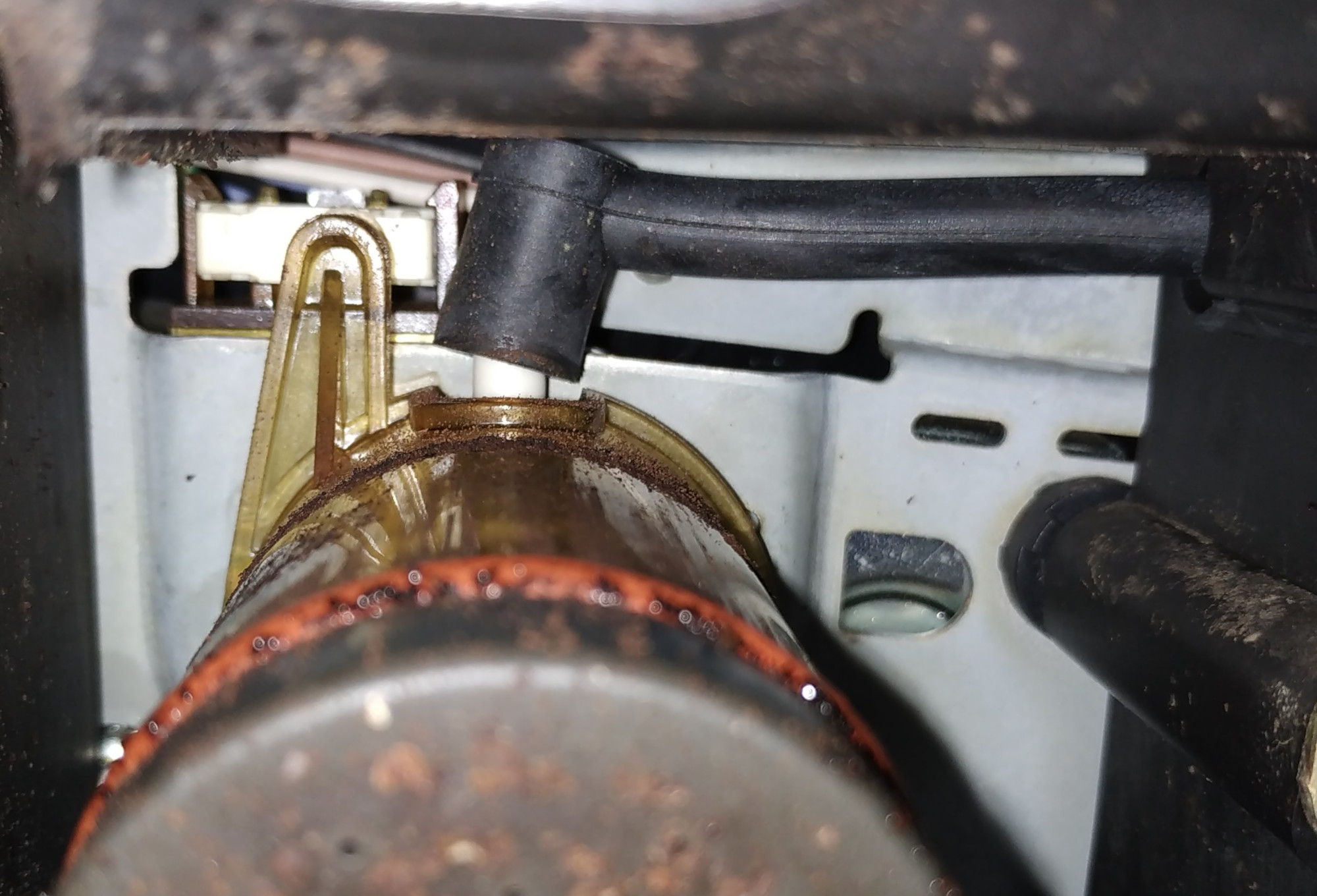 Habe jetzt mal ein Foto von innen richtung Brühzylinder gemacht und dabei festgestellt dass dort der schwarze Winkel (weiss leider nicht was das ist) abgegangen zu sein schein - es stimmt zumindest nicht mit dem Bild aus der Bauteilübersicht überein.
