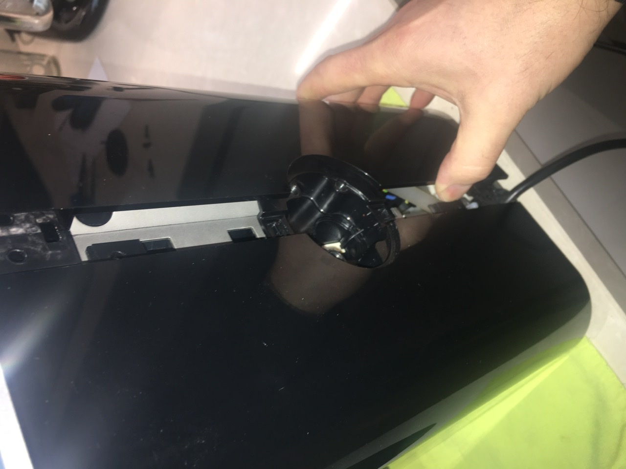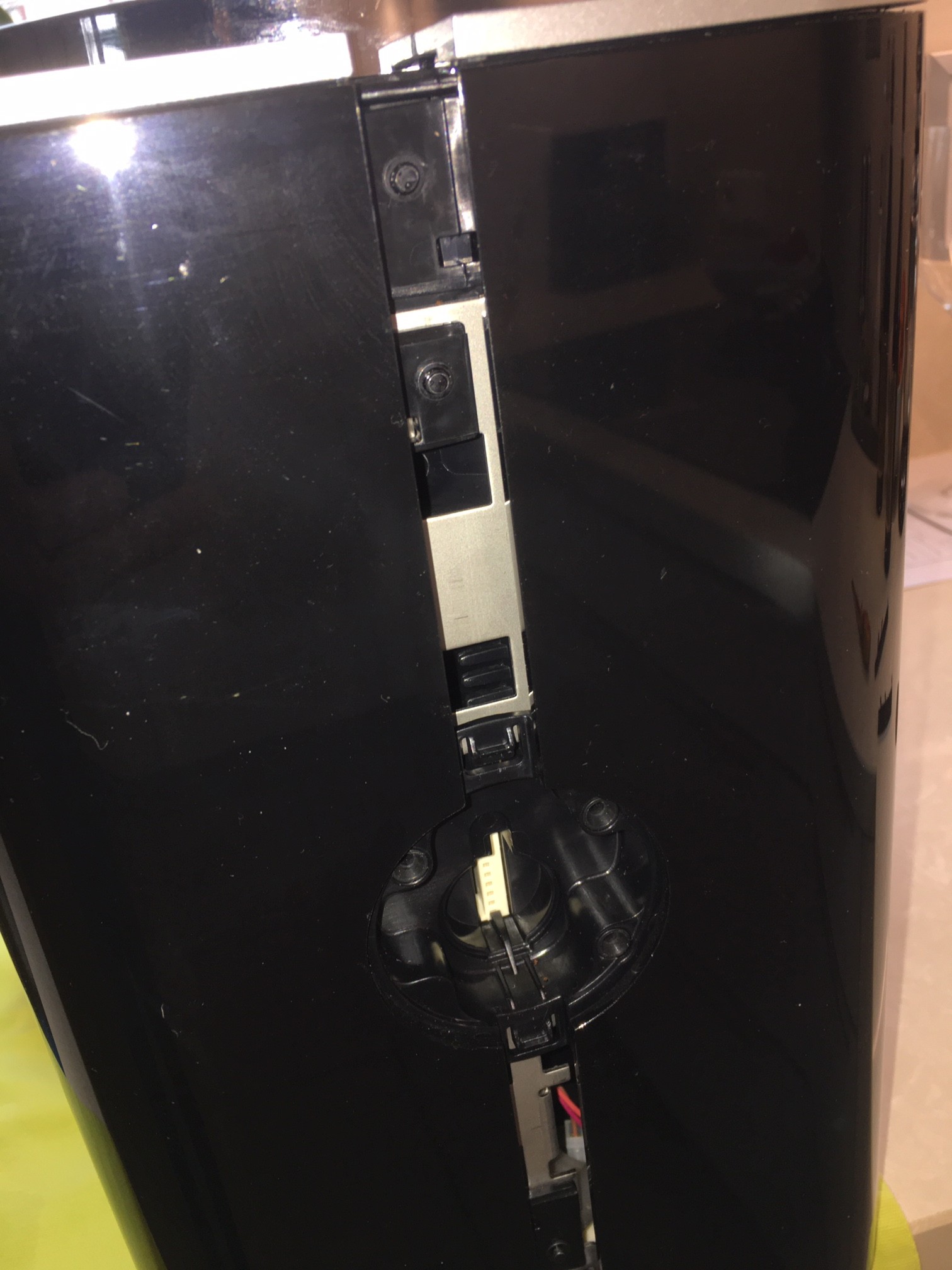 Auf der gegenüberliegenden Seite habe ich vor dem Entfernen des Seitenteils die Wassertankhalterung (den großen schwarzen Ring) von unten gelöst.