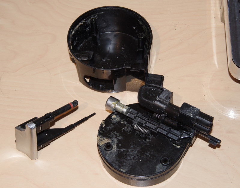 Hier mal was passiert, wenn man eine Solac mit Instant-Cappuccino betreiben will. Die Brühgruppe mussten wir im Gerät zerlegen und wirklich vom oberen Brühkolben mit einem Meißel + 3 Kilo Hammer herrunterschlagen, so verklebt war die scheiße.