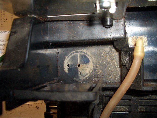 Der obere Brühkolbenträger wurde irgendwann mal verbessert, da die Feder zu schwach war und der Kolben immer heraus gedrückt würde - gab ne riesen Sauerei. Man behalf sich einfach, indem eine Formscheibe unter die Feder gesetzt wurde. Splint wieder mit Silikon verkleben nicht vergessen. Später gab es dann komplett neue Brühkolbenträger - leider wurden davon maximal 4 Stück pro Monat geliefert - wenn überhaupt mal welche kamen. Toll, bei 4 Hochregalen voll Kundengeräten die genau so einen Umbau brauchten.