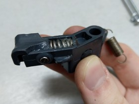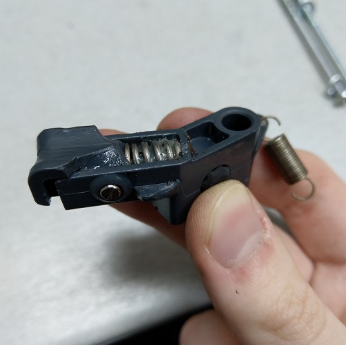 -Jetzt noch den Bolzen nach unten aus der Halterung vom Haken ziehen, dann kann man diesen herausnehmen