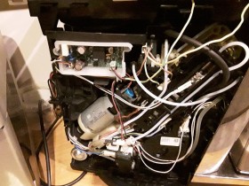 bei meiner Maschine ist der gleiche Fehler.Ich habe einen neuen Brühkolben eingebaut,also daran kann es bei meiner Maschine nicht liegen.Wasser tritt auch nur an der Stelle aus wenn ich ein Getränk mit Milch mache.Ich habe zusätzlich eine neue Dampfheizung ,beide Ventile ausgetauscht und zusätzlich einen neuen Milchanschluss eingebaut.Der Fehler ist immer noch daWasser tritt an der Stelle aus und sie produziert keinen Milchschaum.Übrigens der Milchtank ist auch.Ich weiß nicht mehr weiter.Hat jemand zufällig Bilder von einer geöffneten Maschine.Ich habe diese Maschine gebraucht gekauft.Vielleicht sind ja von meinem Vorgänger irgendwelche Schläuche vertauscht worden.Es wäre schön wenn mir jemand weiterhelfen könnte.Vielen Dank im voraus und viele Grüße