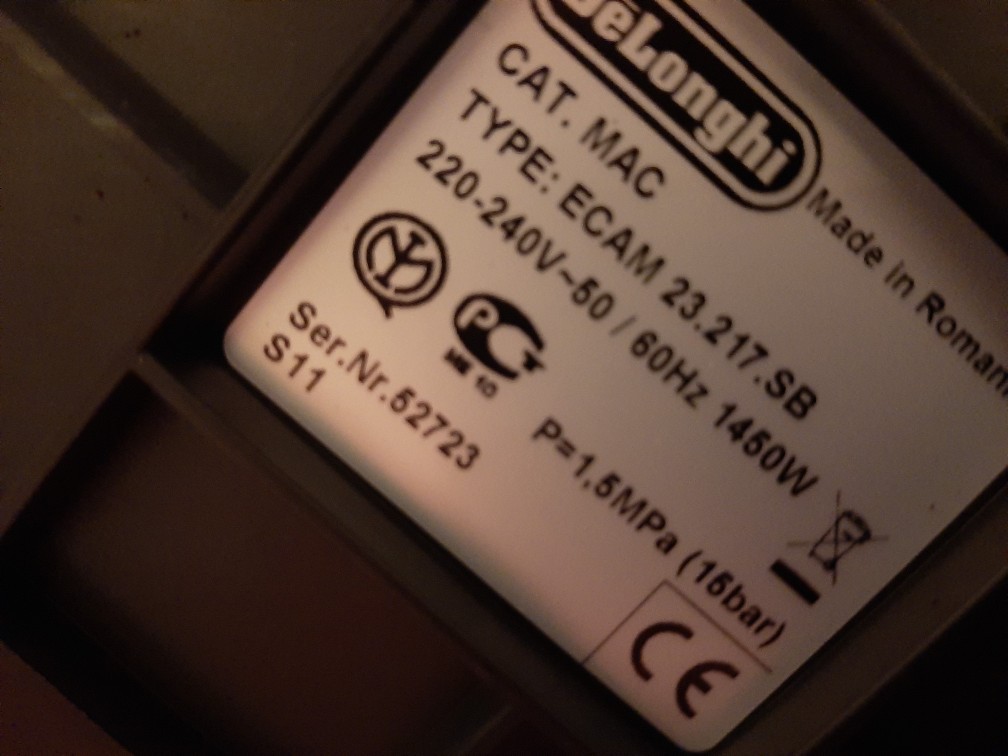Hersteller: DeLonghi | Typ-/Modell: ECAM 23.217.SB - Kaffeevollautomat | ca. Baujahr: 2015