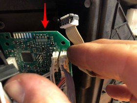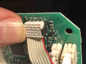 Beim Austausch des Connectors ist mir leider ein Missgeschick passiert. Nach dem Abbau der Bedieneinheit ist der Stecker des Flachkabels, welches von der Display-Einheit kommt, aus der Platine gebrochen und lässt sich auch nicht mehr einclipsen.