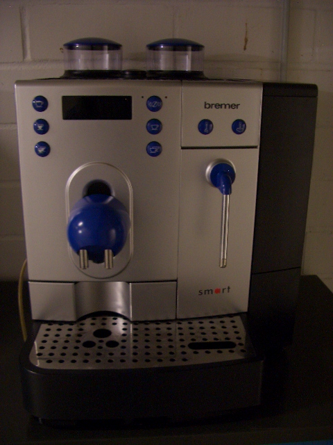 hier mal ein Bild meiner neuen Maschine. Bj. 2003, 12475 Bezüge. Hängendes Magnetventil (Heißwasser/Dampf) repariert, die BG und DV kmpl. revidiert wegen Störung 8. Maschine wurde über ein Jahr nicht benutzt. Die Mahlwerke wurden gereinigt aber noch nicht getestet, hier habe ich neue Gummis für die Bohnenbehälter geordert weil diese klebrig und unansehnlich sind.