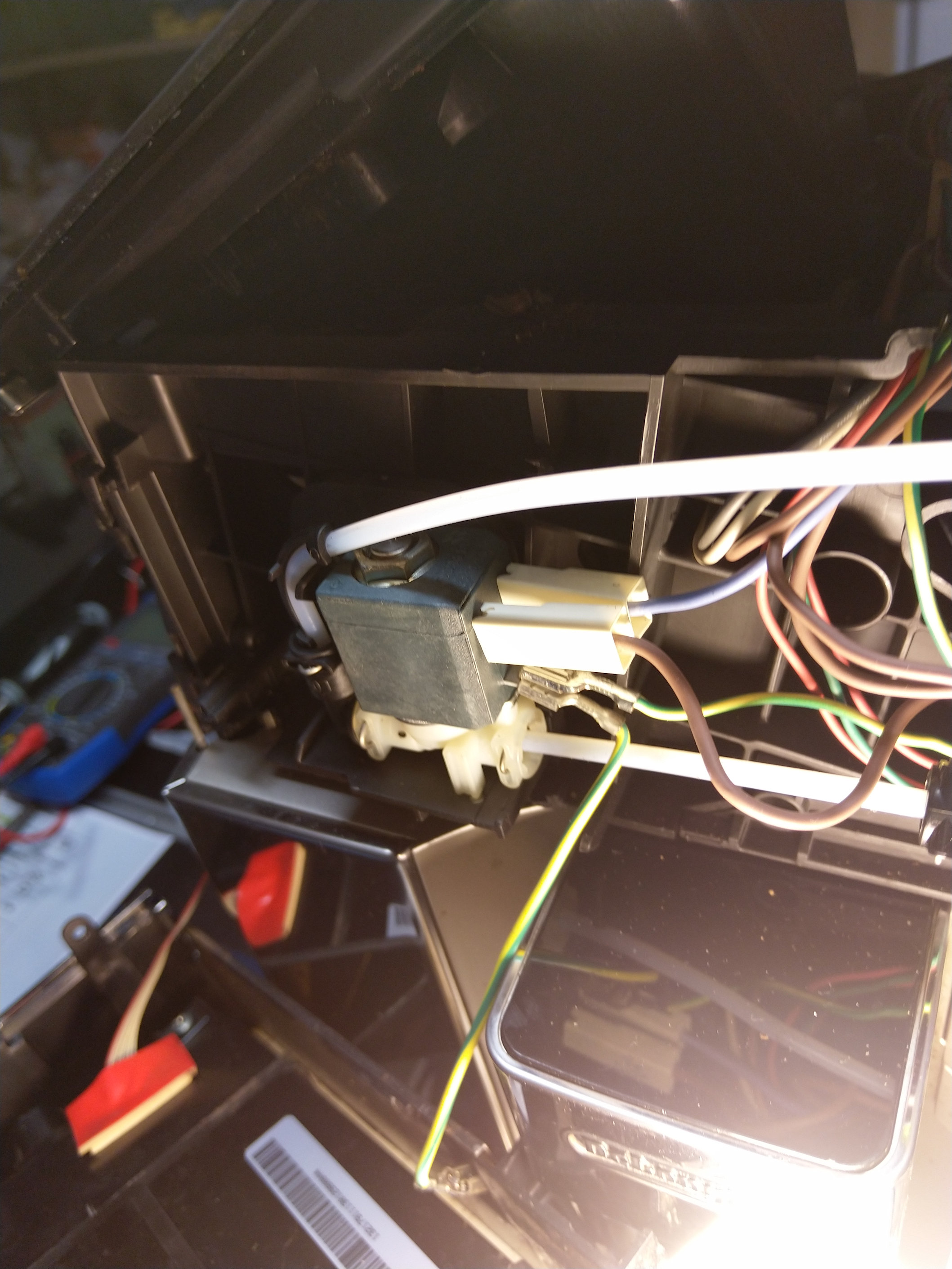 Ich denke, dass es eines oder beide Magnetventile sind, die vorne hinterm Display verbaut sind. Aber ich bin nur ein Laie!