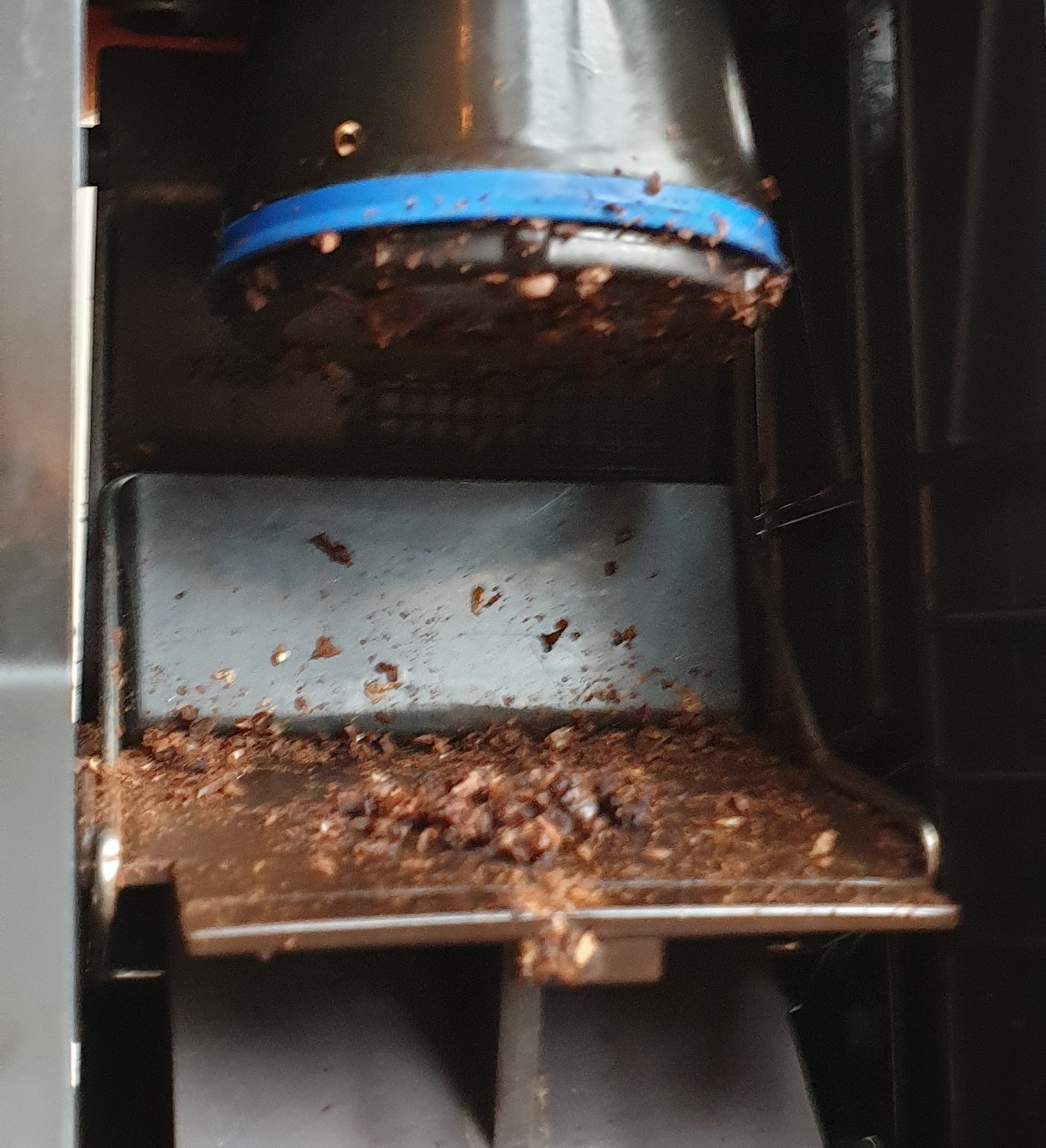 Es kommt kein Kaffee raus. Die Brüheinheit arbeitet, Kaffee wird gemahlen aber trocken ausgeworfen