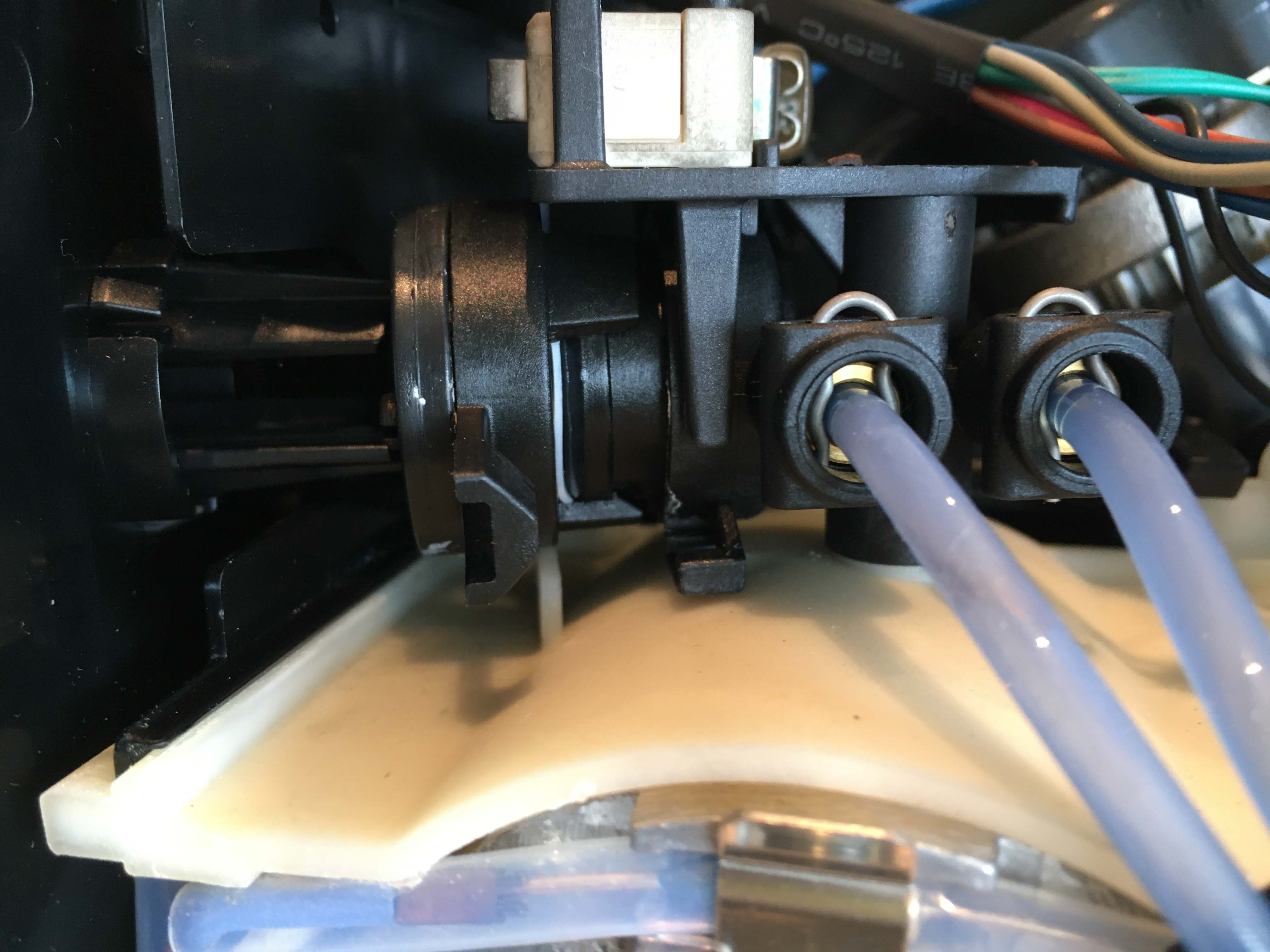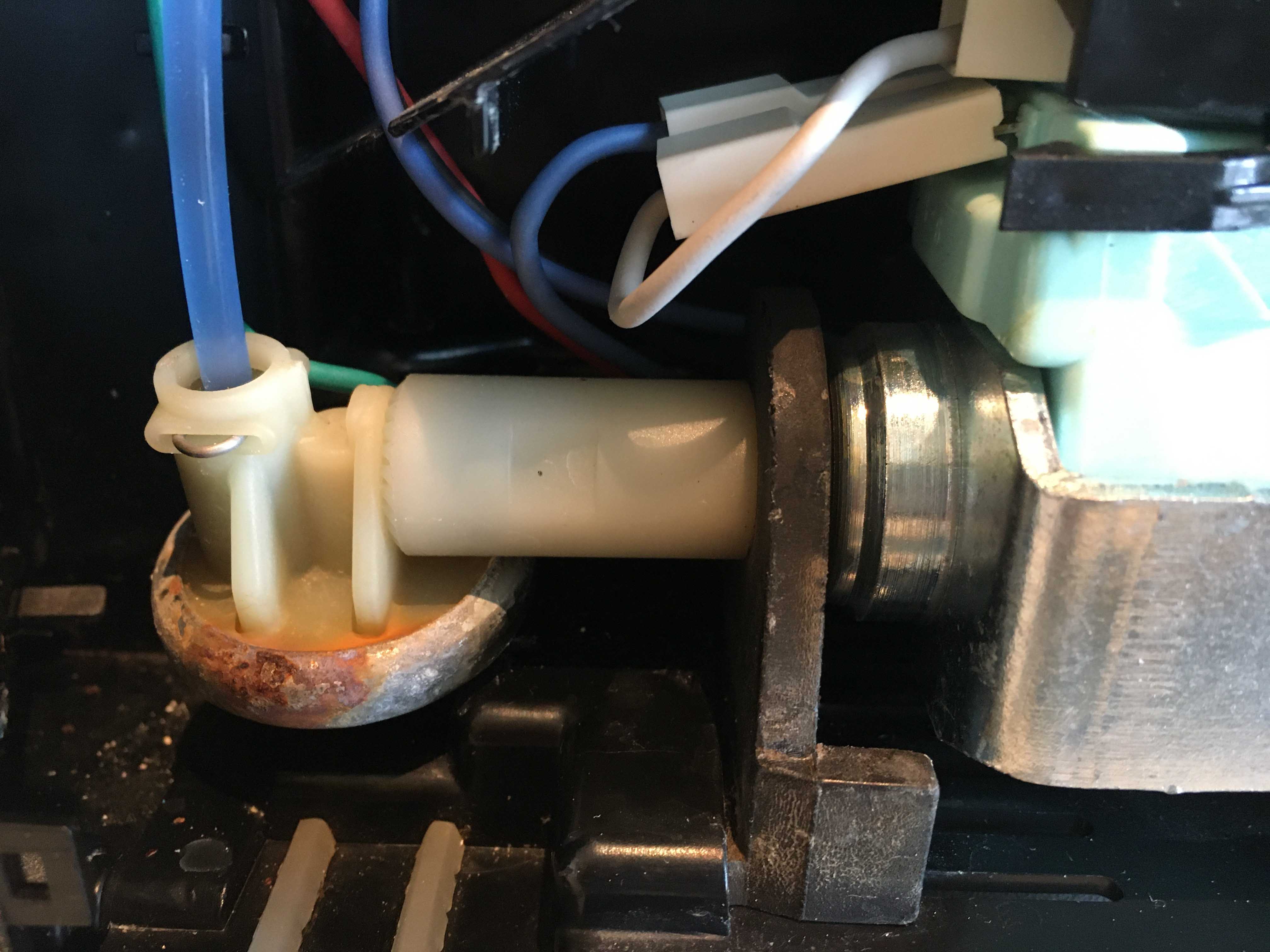 Meine Jura Impressa C5 ist in die Jahre gekommen und seit einiger Zeit inkontinent. Das Wasser tritt rechts vorne aus und ich habe erst vermutet, dass es vom Membranregler kommt, der schon deutliche Gebrauchsspuren zeigt. Dort ist aber alles dicht, das Wasser tritt hinter dem Drehknopf für das Heißwasser aus. Und zwar eigentlich bei jeder Aktion (Spülen, Milch Aufschäumen, Kaffee Zubereiten). Die Frage ist nun, wie das Teil hinter dem Drehknopf heisst (s. Fotos 1 und 2) und wie man es ausbaut. Ich habe das nirgends gefunden. Ausserdem frage ich mich, ob es sinnvoll wäre, den Membranregler zu ersetzen, der anscheinend seine besten Tage gesehen hat (s. Foto 3). Herzlichen Dank schon einmal für jegliche Hilfe.