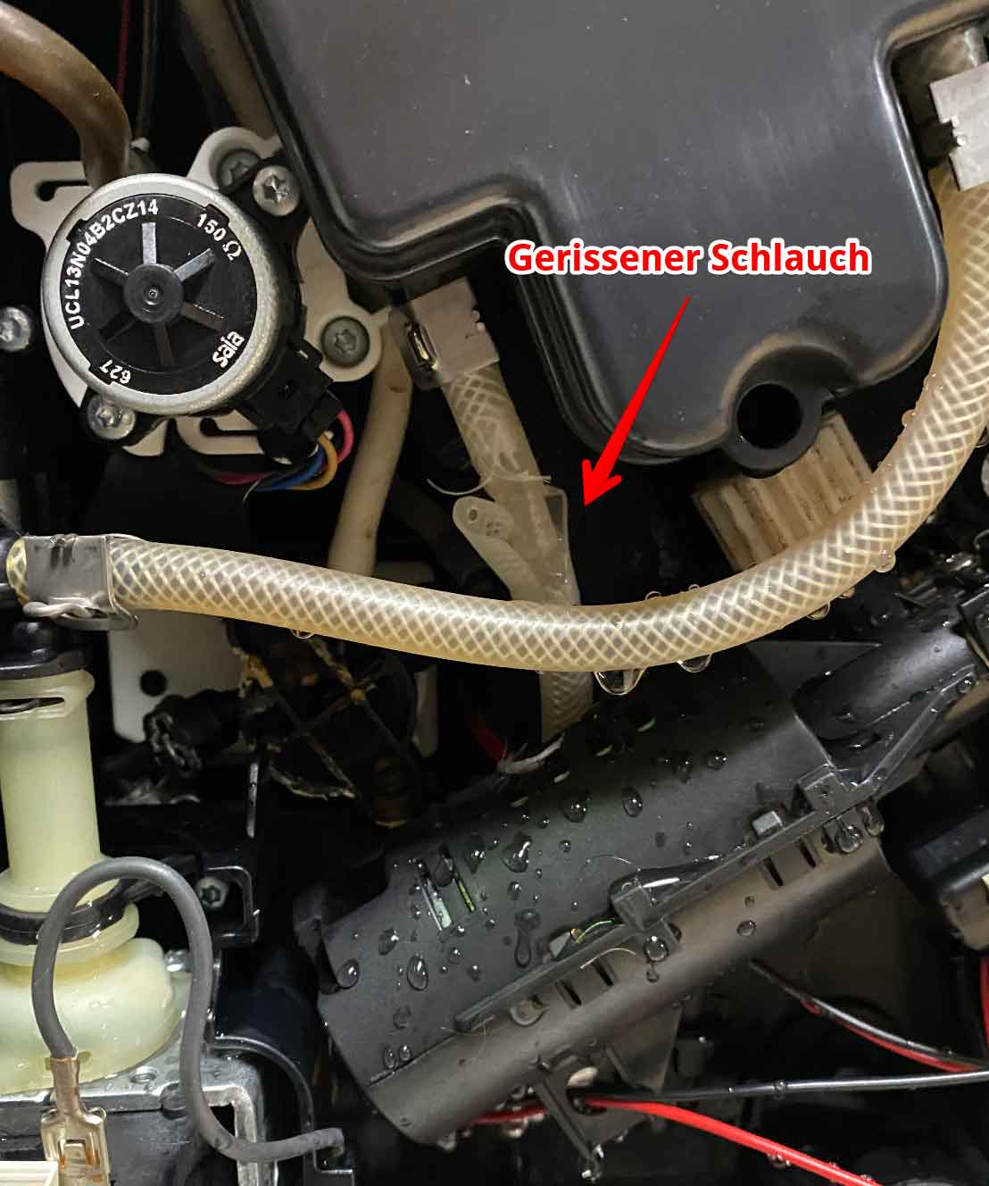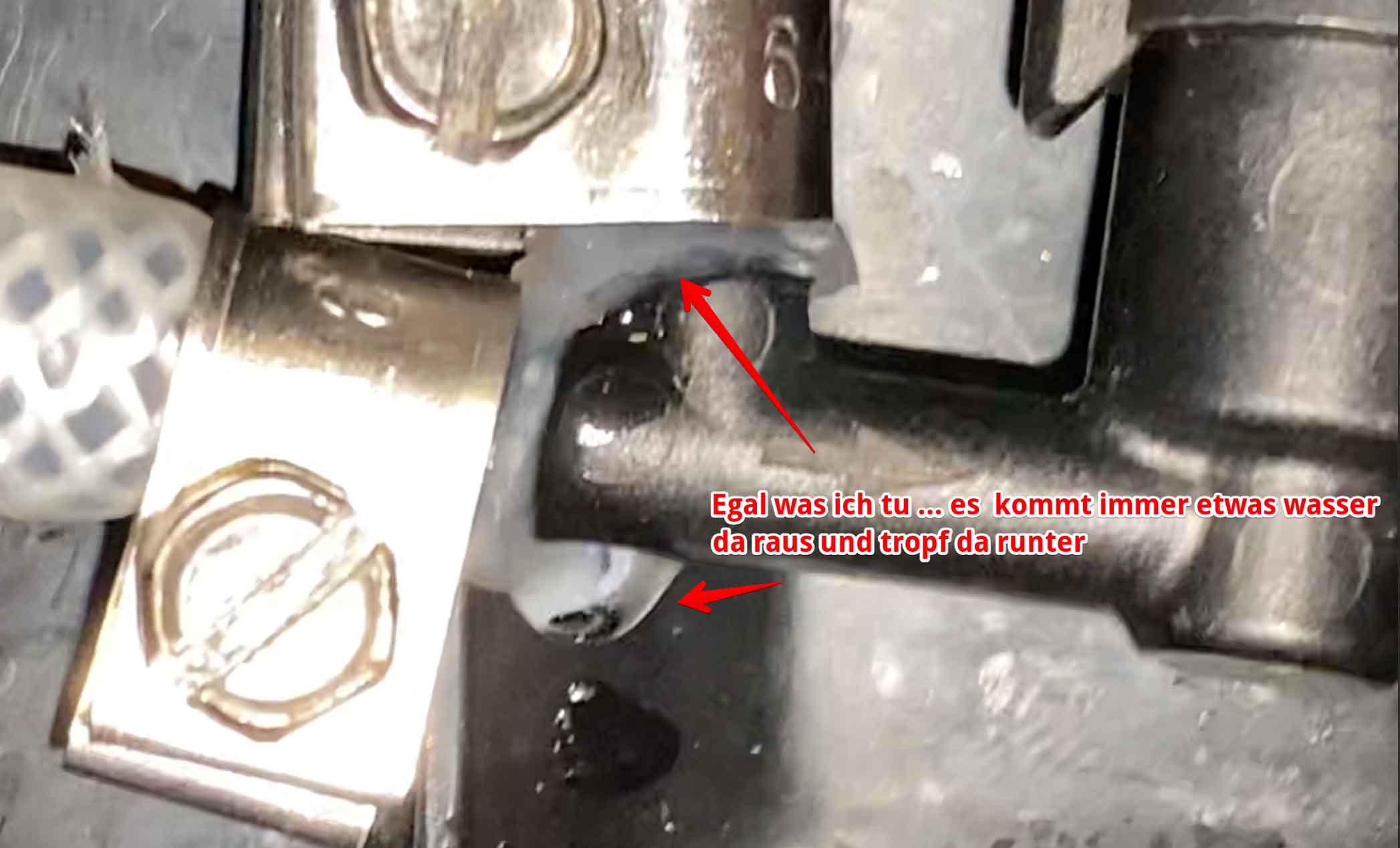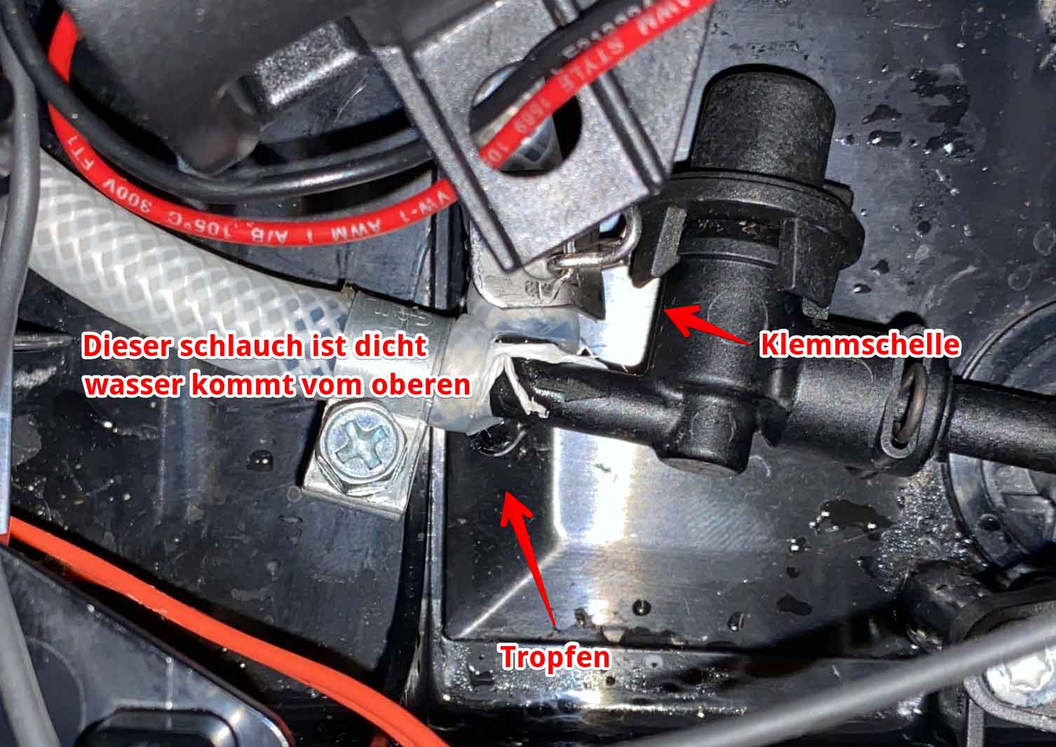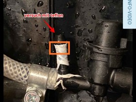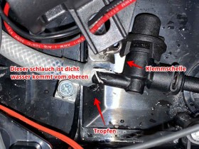 Doch nach dem ich alles mit den Original Teilen zusammen gebaut hatte und alles wieder ging fiel mit auf dass es an dem unteren Anschluss des Schlauches Tropft.