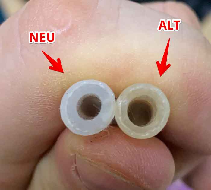 • Naja, dann hast du nun zumindest die Ursache gefunden. Möglicherweise ist der Haarriss auch durch das zu feste Anbringen der Schlauchschelle passiert.