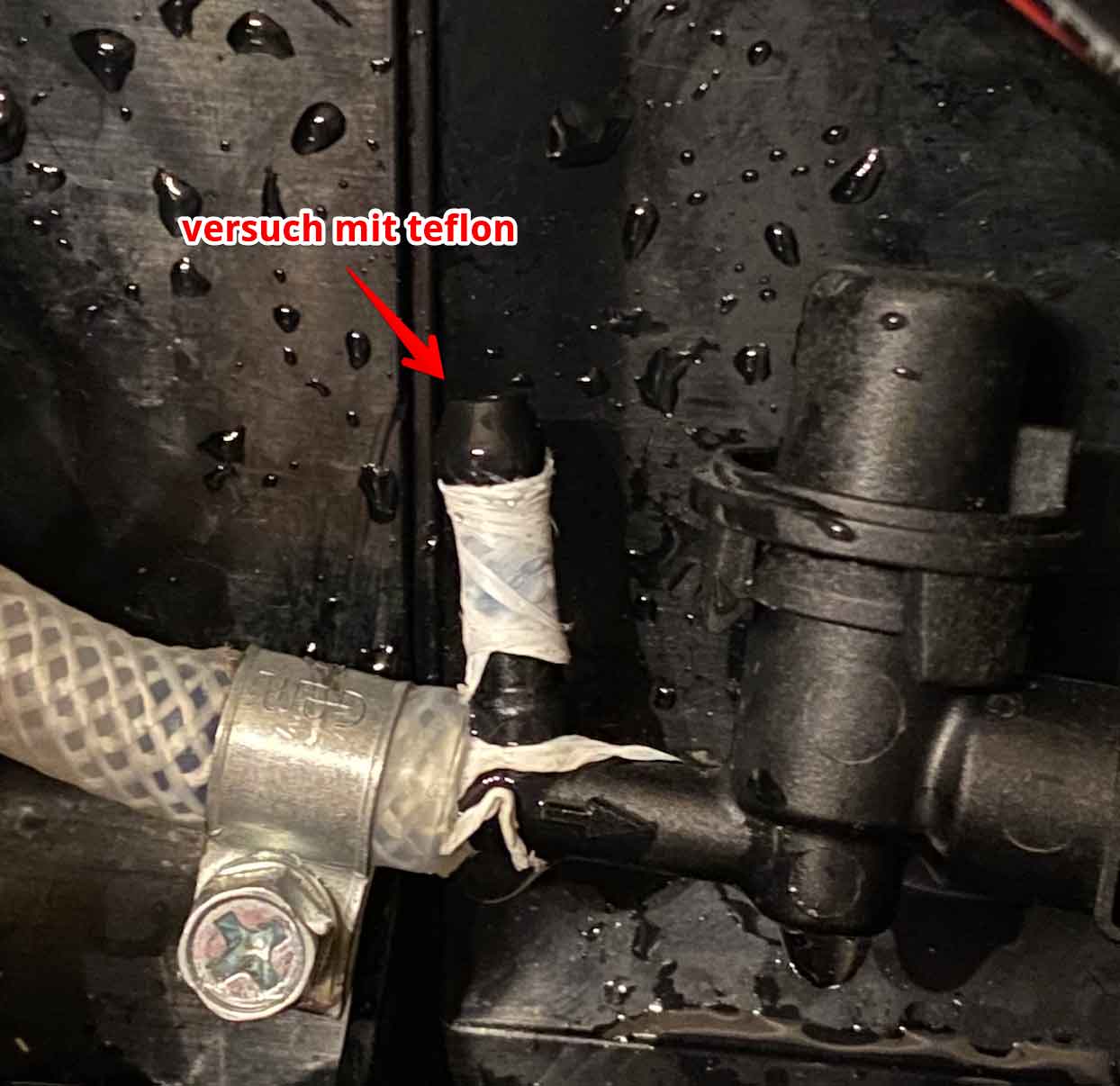 so eine schlauch schelle ist ja keine Raketentechnik ;) die anderen Anschlüsse sind ja auch alle dicht .. echt merkwürdig