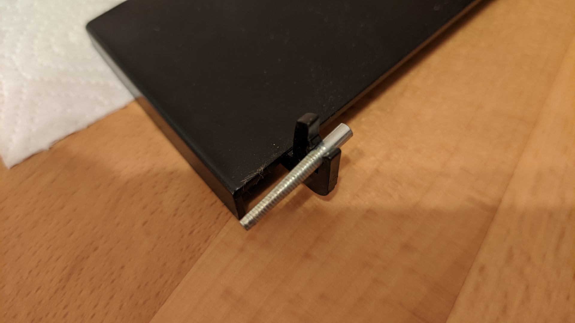 Einen fast identischen Durchmesser der originalen Aufnahmen am Gehäusedeckel haben Türdrückerstifte, zur Befestigung von Türklinken, aus dem Baumarkt. Diese kosten ca. 5,- Euro im 10er Pack, wenn man nicht noch welche rumliegen hat. Man kann natürlich auch jeden anderen Metallstift mit ca 3mm Durchmesser verwenden. Die Türdrückerstifte sind zwar ganz leicht konisch, was für den ursprünglichen Einsatzzweck auch Sinn macht. Das macht aber nichts, denn auch an der schmalsten Stelle, hält der Deckel perfekt. Vorteil der Stifte, da sie ca. 25mm lang sind: man hat dann eine durchgänginge Welle mit zwei Befestigungspunkten.
