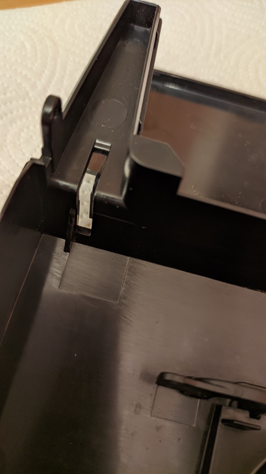 Nachdem ich hier schon so viel Hilfe und Tipps bekommen habe möchte ich dem tollen Forum und allen Interessierten Jura Schraubern etwas zurück geben. Ich hatte nun schon mehrfach den Fall, dass der Wassertankdeckel und der Deckel für den Bohnenbehälter nicht mehr zu befestigen waren. Aber nicht, weil - wie leider recht häufig - die Haken an den Deckeln gebrochen waren, sondern weil die Pins bzw. Aufnahmen am Gehäusedeckel abgebrochen waren. Anstatt einen neuen Gehäusedeckel zu kaufen, kann man sich ganz gut behelfen.
