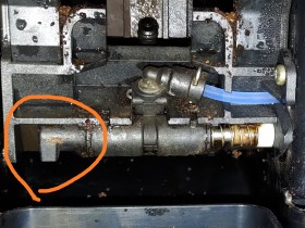 Ich habe von einem Arbeitskollegen eine Jura F70 geschenkt bekommen weil seine Frau unbedingt was neues haben wollte. Angeblich hat bei ihm die Maschine noch einwandfrei funktioniert bevor er sie für längere Zeit im Keller eingelagert hatte. Als ich sie bekommen habe hatte ich sie gereinigt und so die ersten 12 Tassen Kaffee kamen auch perfekt aus der Maschine. Doch dann kam nix mehr. Egal ob Kaffee oder das Wasser aus dem Spülprogramm, alles landete in der Tropfschale. Die Bohnen werden ganz normal gemahlen, die Pumpe macht keinerlei merkwürdige Geräusche, es fließt alles flüssige in die Tropfschale und zwar bevor es mit dem Kaffeepulver in Berührung kommt. Das Pulver das im Behälter landet ist nämlich unberührt und in der Schale ist klares Wasser. Ich habe mal den Behälter entfernt und den Schalter mit einem Lineal überbrückt und gesehen dass das Wasser aus der auf dem Bild eingekreisten Öffnung fließt. Was ist denn da kaputt? Oder hängt vielleicht irgendwo etwas?