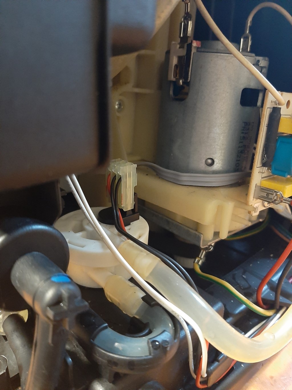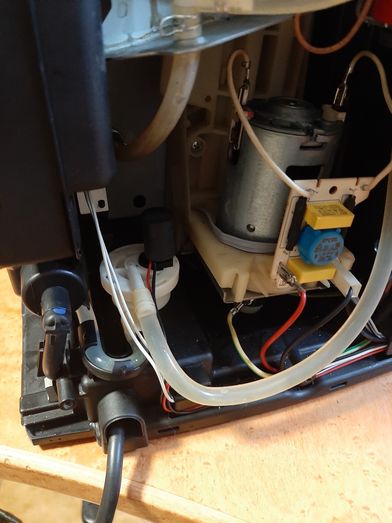 Probier auch mal Netzstecker raus, Einschalttaste und P-Taste gleichzeitig gedrückt halten, Netzstecker rein, ca 20sec warten dann Maschine einschalten...??? -