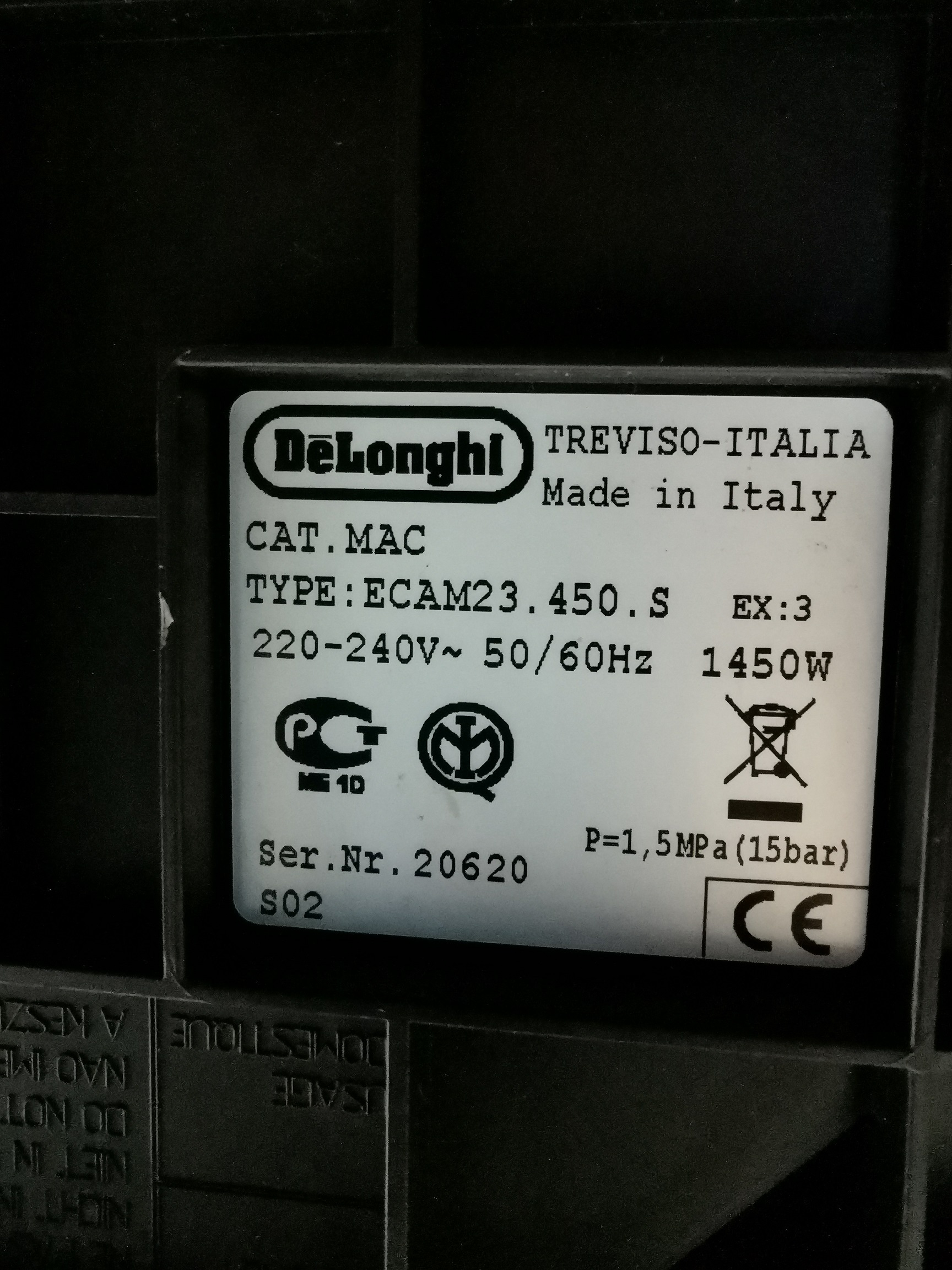 Hersteller: DeLonghi | Typ-/Modell: ECAM 23.450.S EX-3 - Cappuccino | ca. Baujahr: 2012