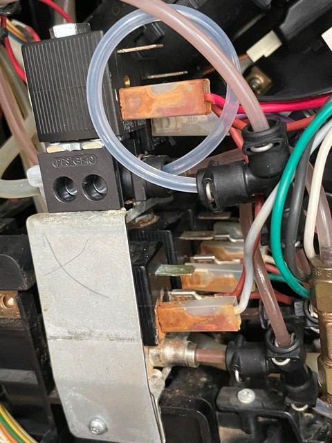 • Das neue Auslaufventil ist eingetroffen und eingebaut. Die Spülung des Kaffeeteils ist jetzt wieder ok, aber beim Spülen des Milchteils passiert wieder die Fontäne aus der Brüheinheit und zwar muss es was mit dem Drainageventil zu tun haben. Ich muss die BG wieder ausbauen um ein foto zu machen, wo es herausspritzt, es spritzt aus einem schwarzen plastikröhrchen (vermutlich teil des DV) das nach oben gerichtet ist und sich etwa 1.5 cm hinter dem weissen schlauch aus dem DV befindet.