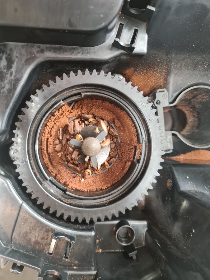 • Dort wo die Entgebraucher nur etwas mehl sieht hinter am tropfschale, wirds deutlicher wenn das Mahlwerk ausgenommen wird. Hierum gehts nach meine meinung. Shon 3-4 cm mehl im tiefe dort wo die motor rustet. Zu sehen ist das beim ring die fehlenden blokkierung dafur sorgt das das mehl nicht nur im MW-auslauf geschoben wird. Hab heute die V5 mit geänderten ring eingebaut. Werde berichten wie das ablauft.
