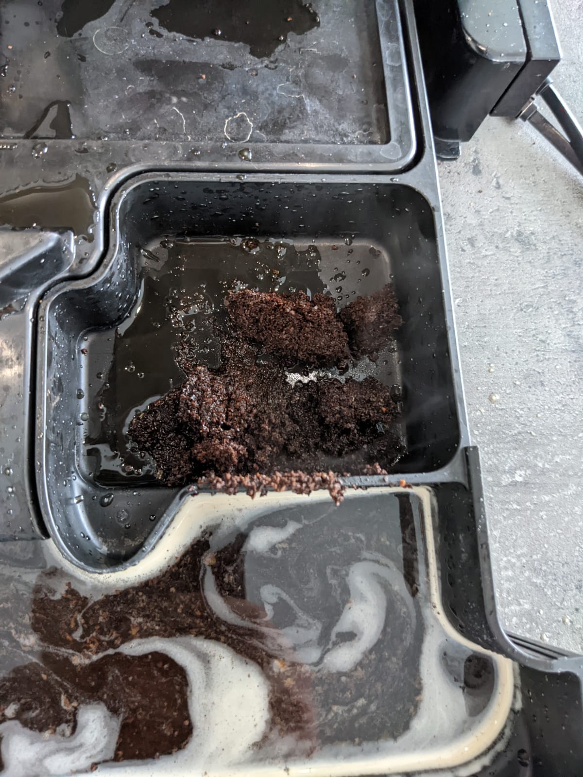 • Wie immer Draingeventil und Einlaufwinkel Brühgruppe und der Trester ist auch ein wenig grob