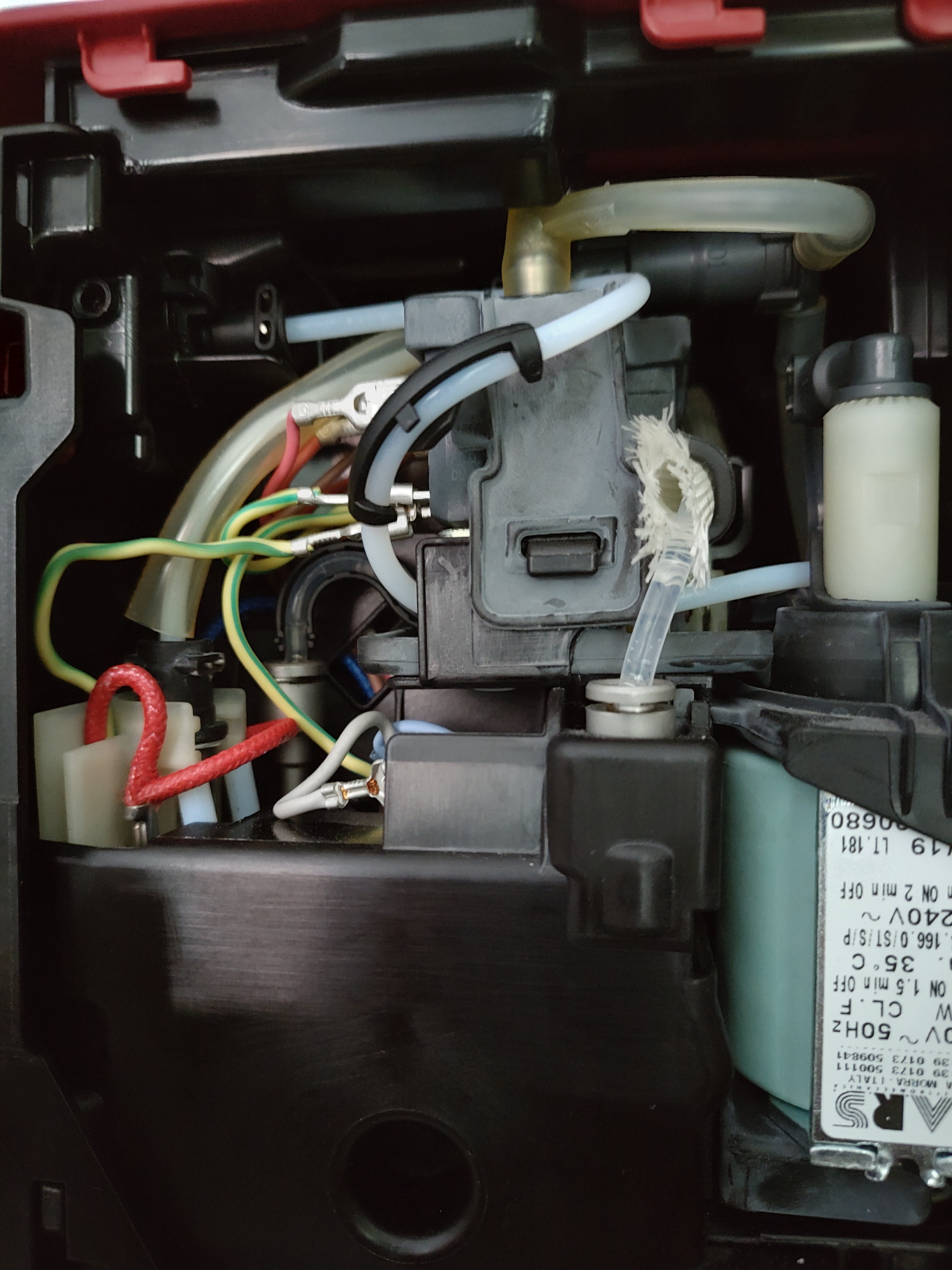 das ist eine gute Frage. Hinter dem schwarzen Plastik im Vordergrund verbirgt sich ein rundlicher Alublock. Ich vermute mal, dass das die "Dampfheizung" ist. Bin, was Kaffeeautomaten angeht, leider echter Laie, normalerweise repariere ich HiFi Geräte und alte Flipper. Aber was tut man nicht alles für seine Frau?! Zerlegen und wieder zusammen bauen ist kein Problem.