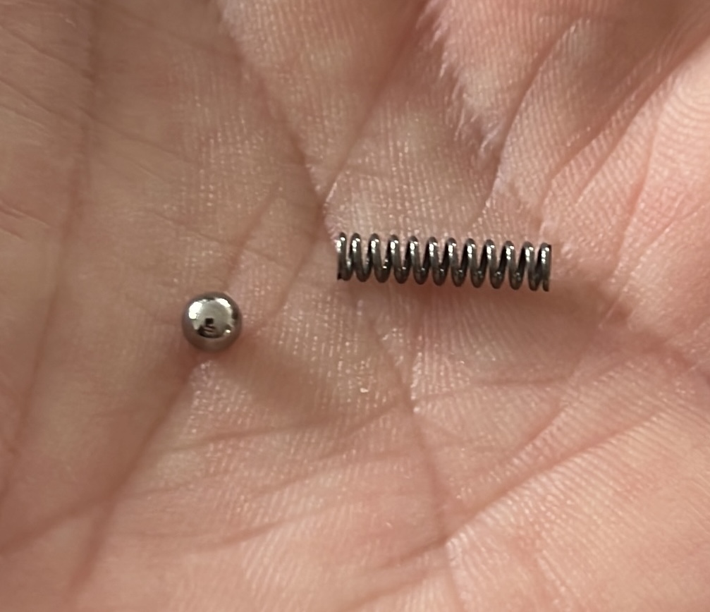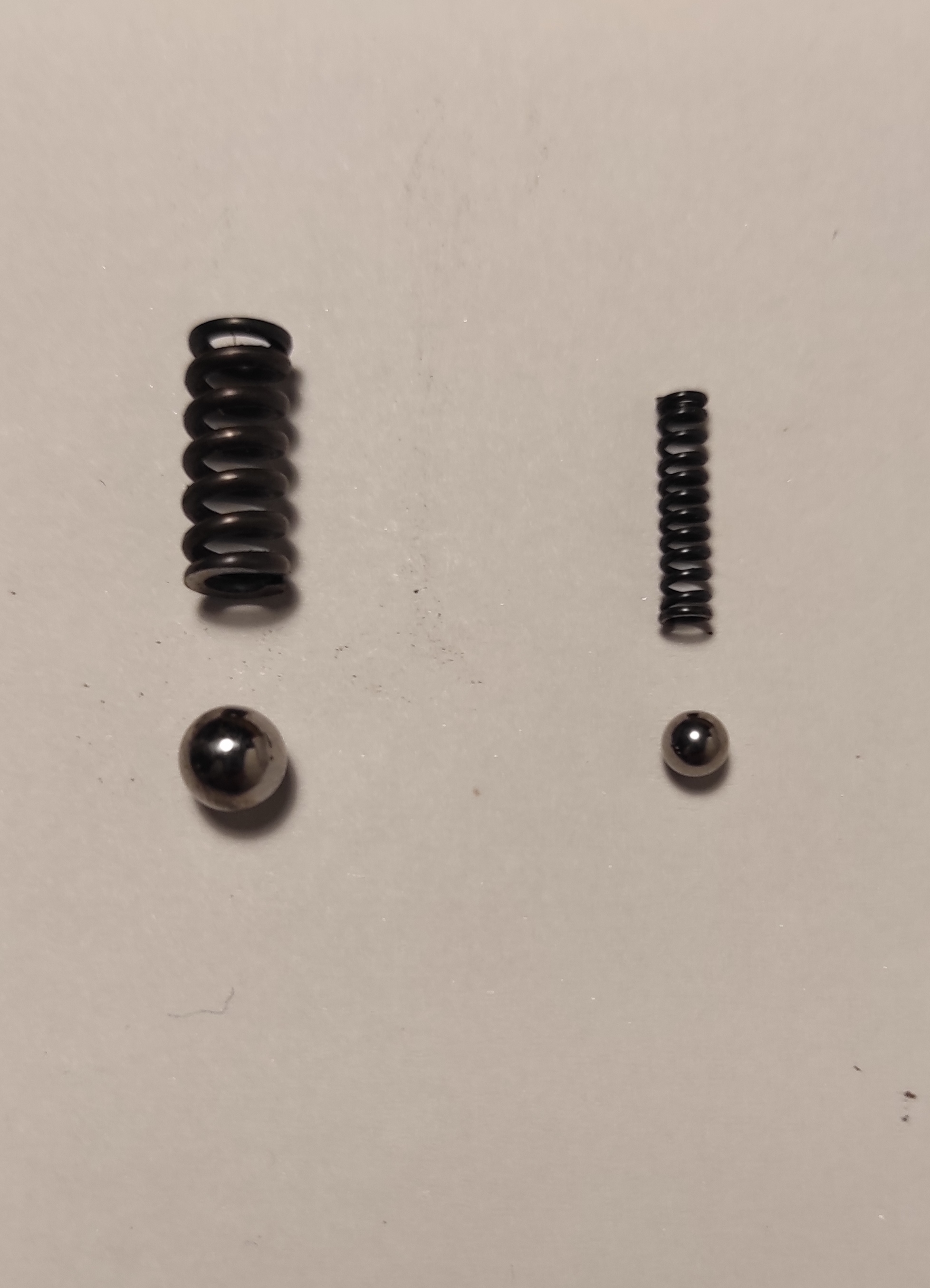 • Sieht nach der Feder und Kugel aus, die ins Mahlwerk gehören, damit der Mahlgrad rastbar eingestellt werden kann. Ohne dem verstellt sich der Mahlgrad selbstständig.