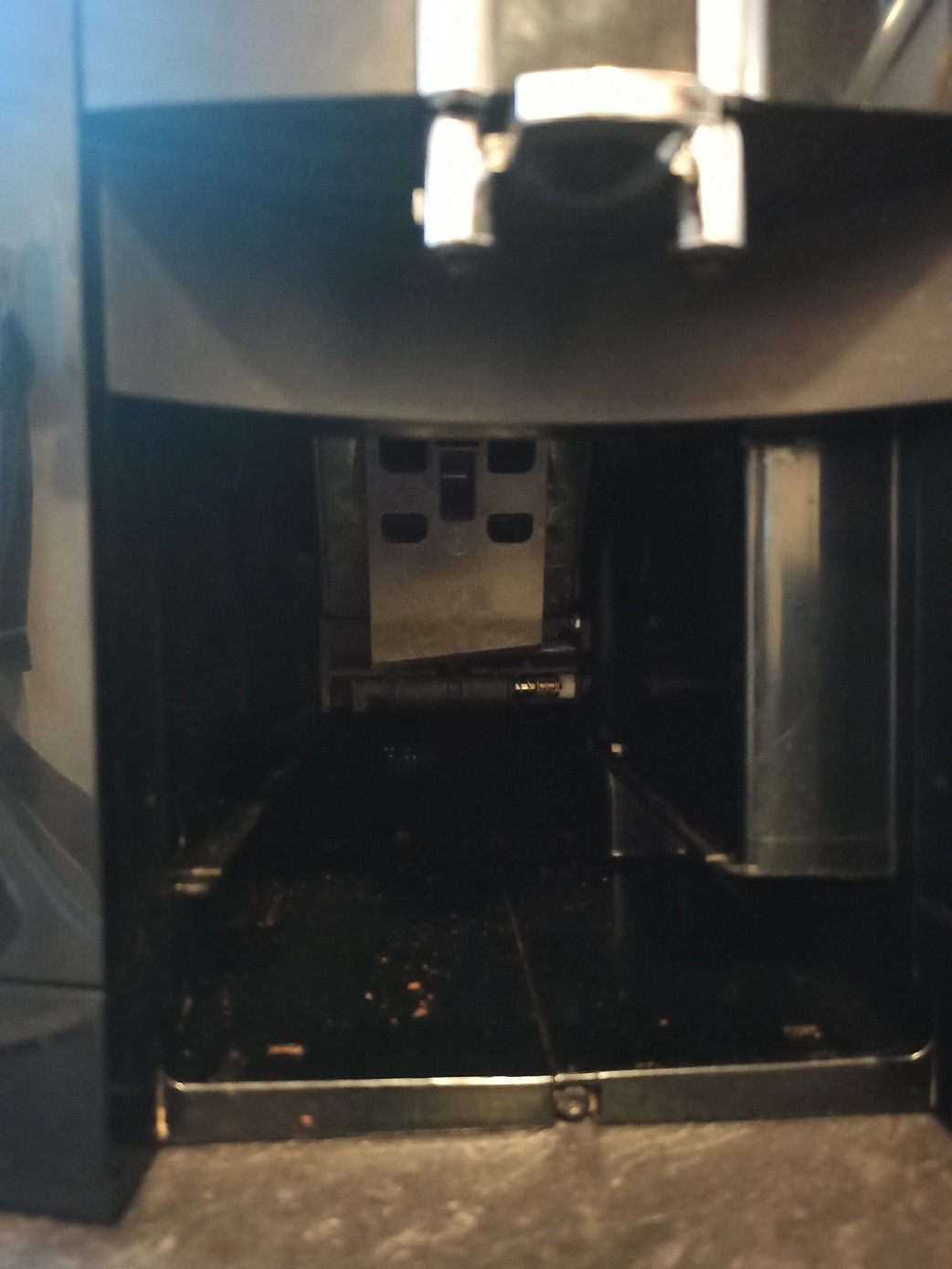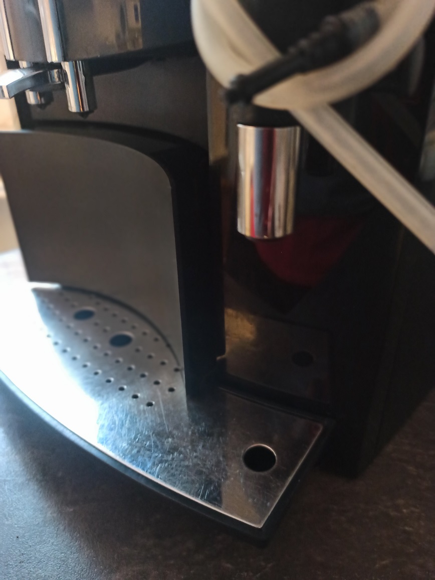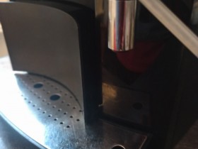 Wenn man nun die Schale mit dem Untergestell einschieben will, stüßt man an und es bleibt ein Spalt von ca. 1cm. Schale stößt an der unten stehenden Brühgruppe an. Man kann die Schale "einfädeln", dann ist auch kein Spalt vorhanden, die Fehlermeldung erscheint trotzdem.